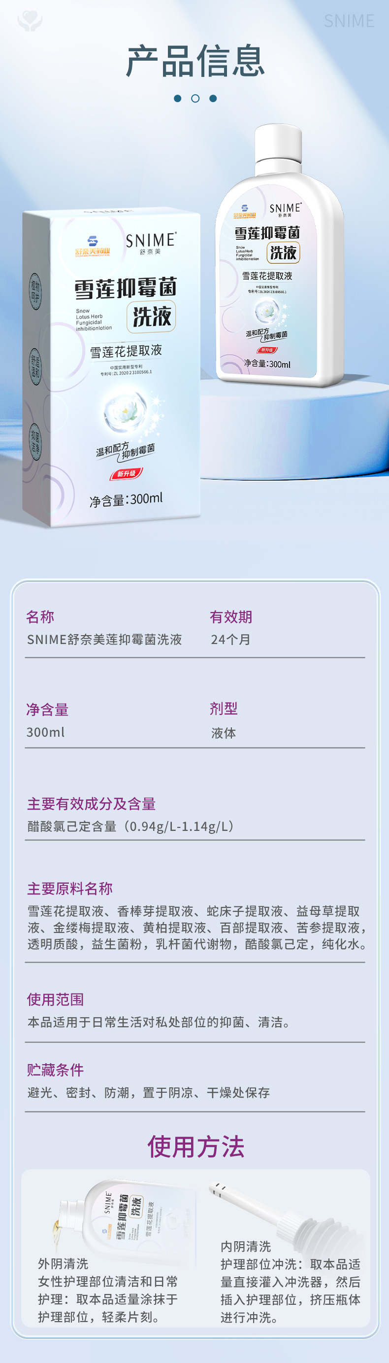舒奈美私处清洗液女性私密护理液外阴清洁洗剂雪莲抑菌洗液洗护液