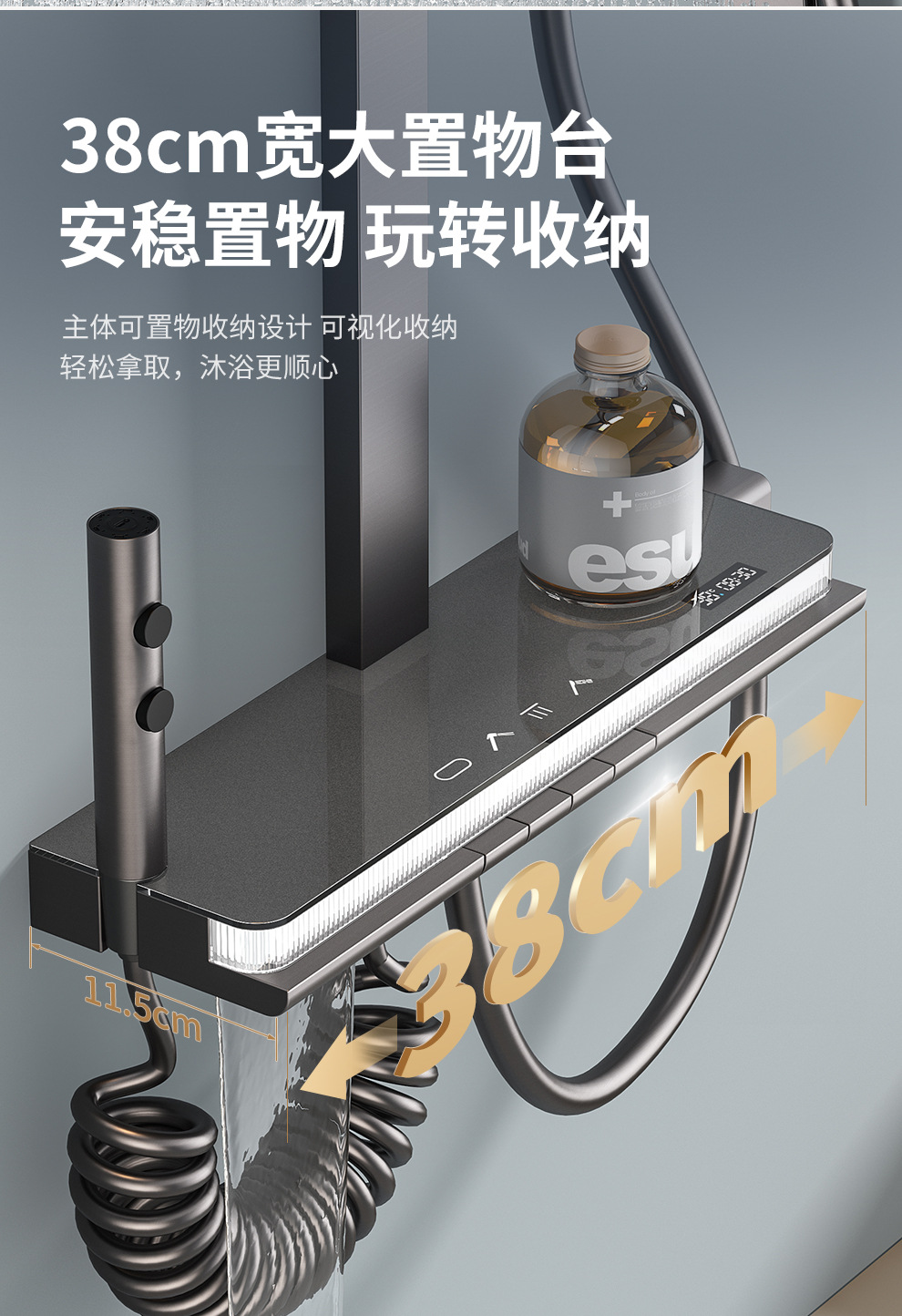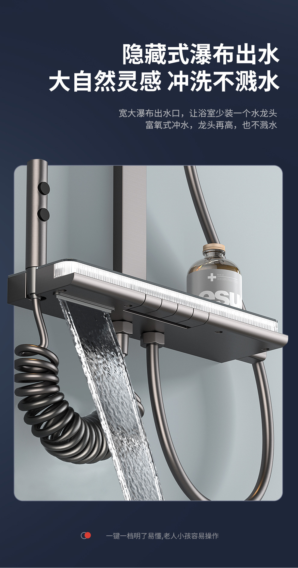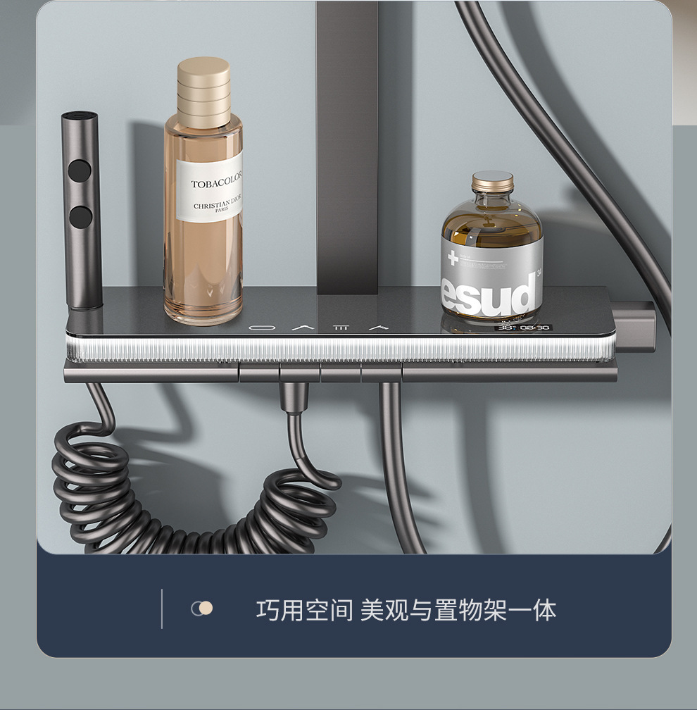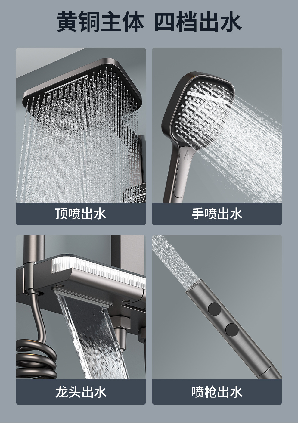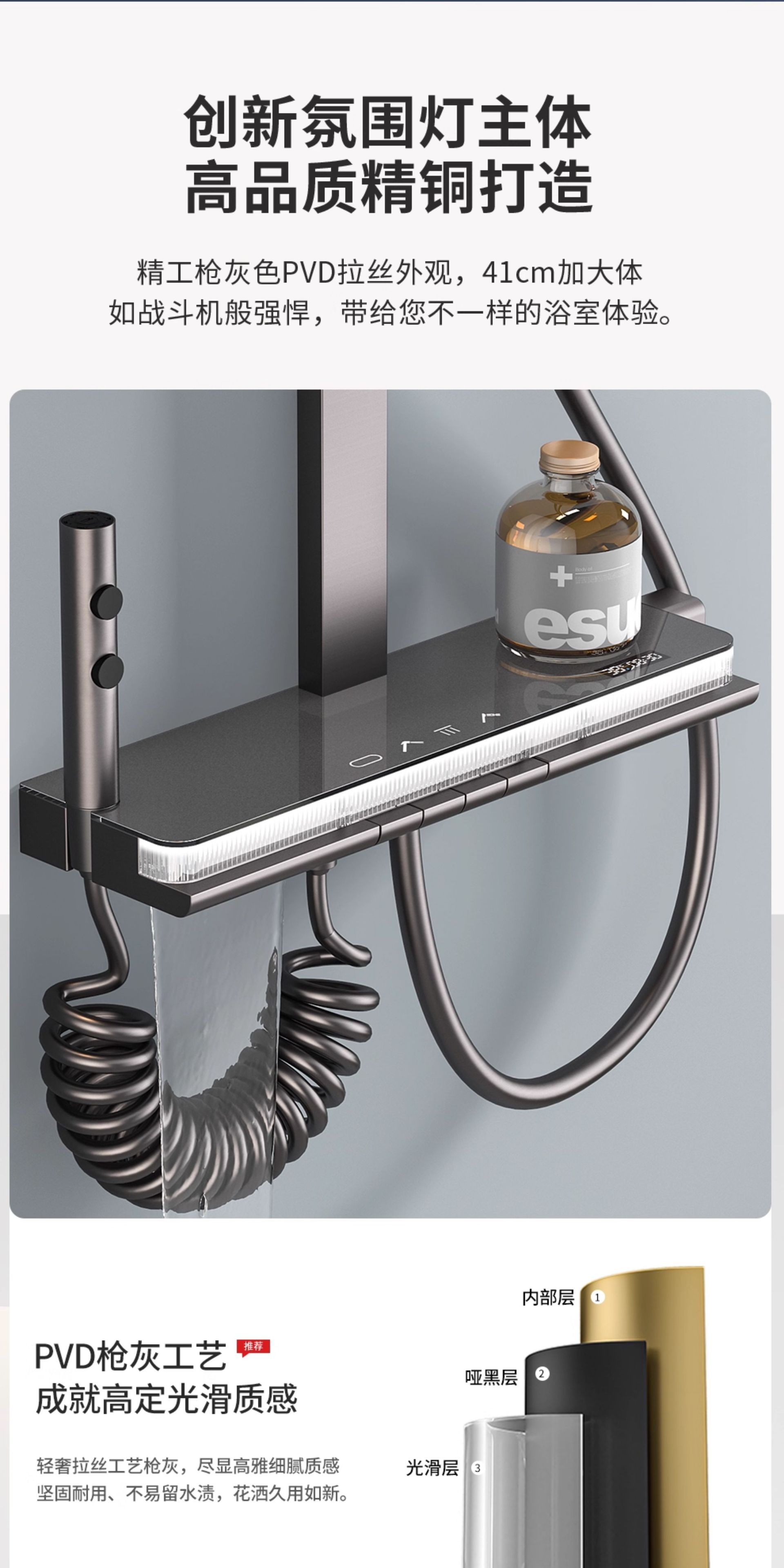 九牧大置物水镀枪灰数显恒温氛围灯全铜淋浴室花洒套装增压奶油风