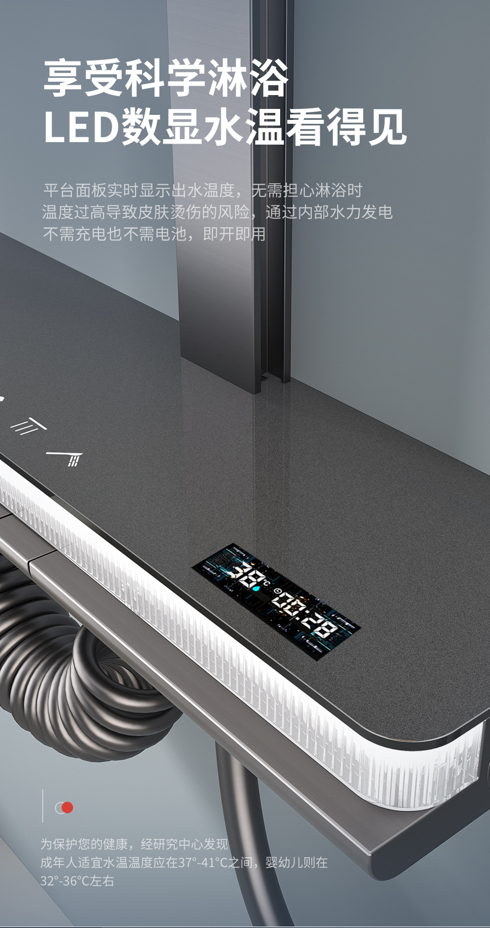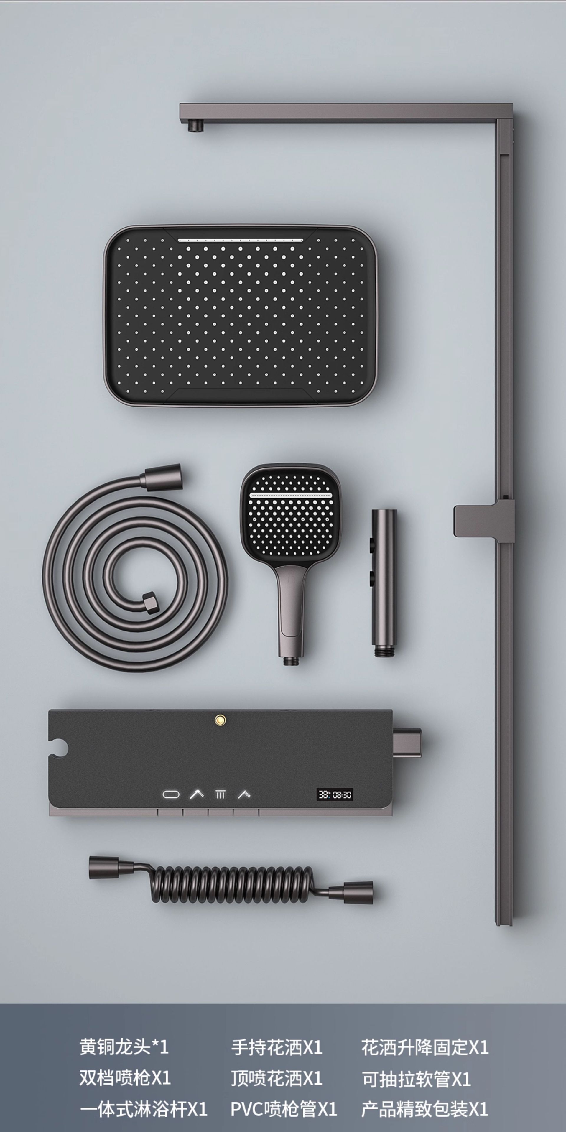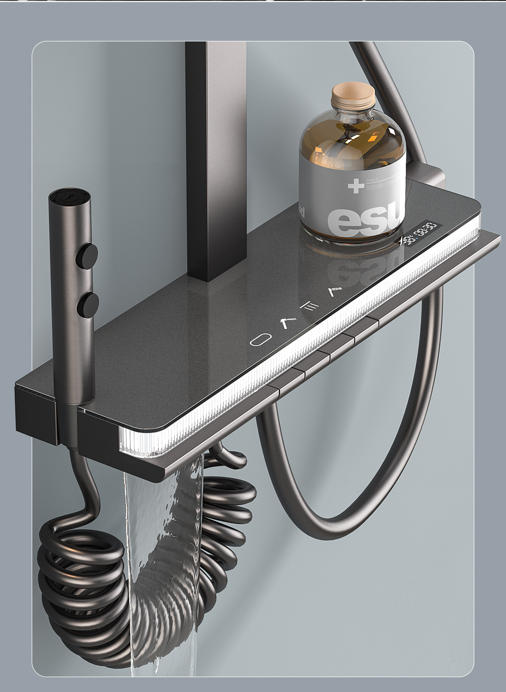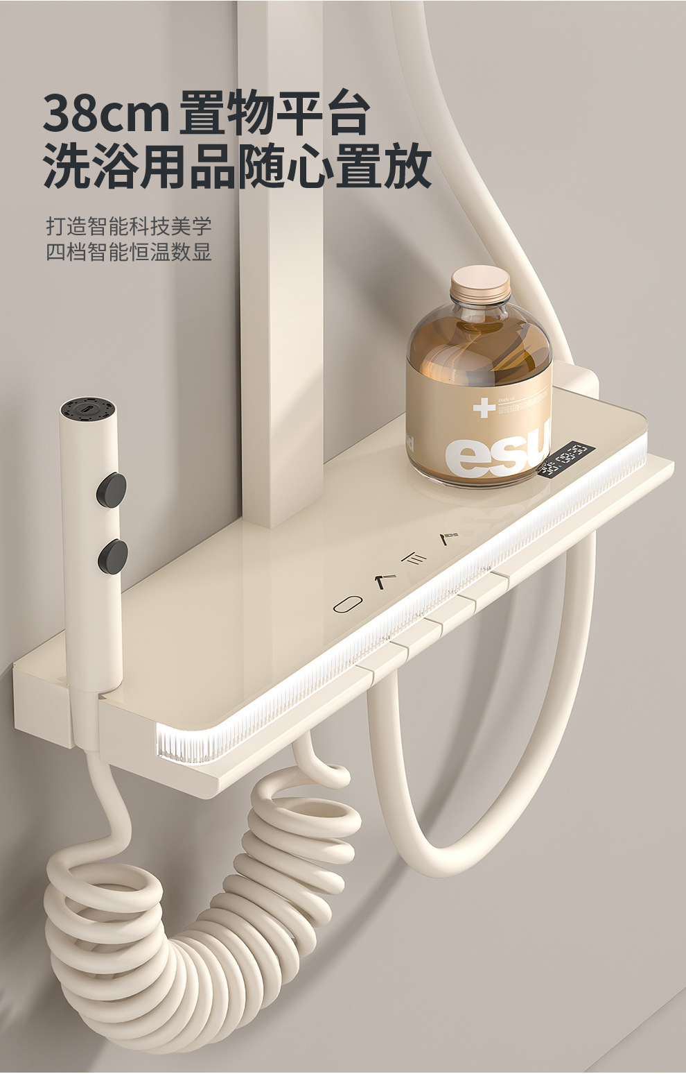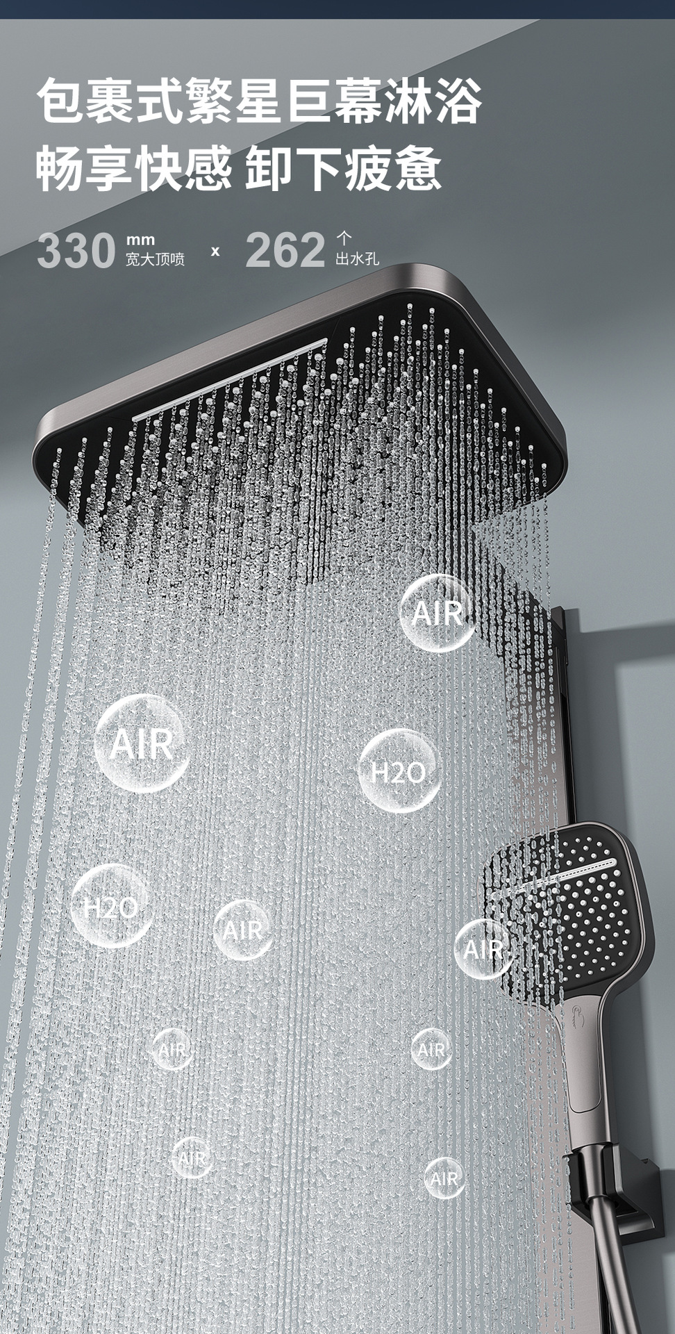 九牧大置物水镀枪灰数显恒温氛围灯全铜淋浴室花洒套装增压奶油风