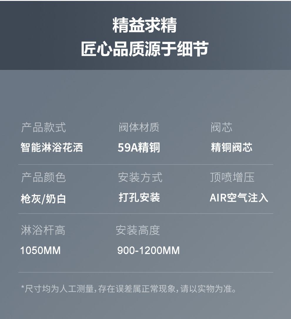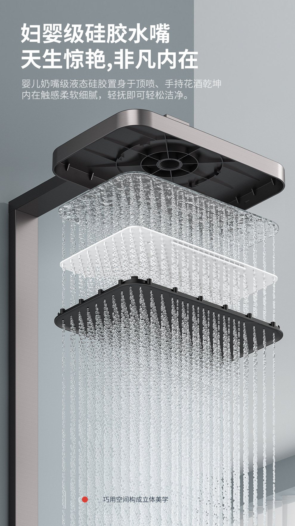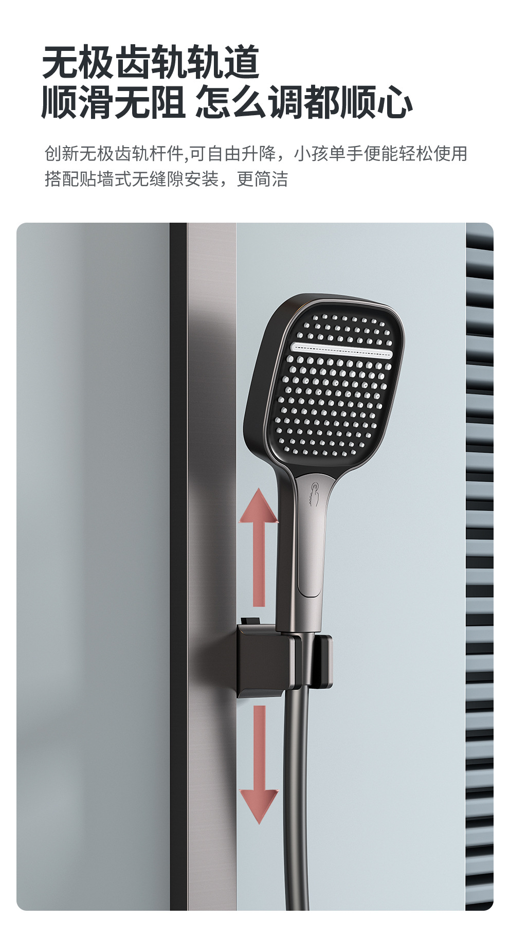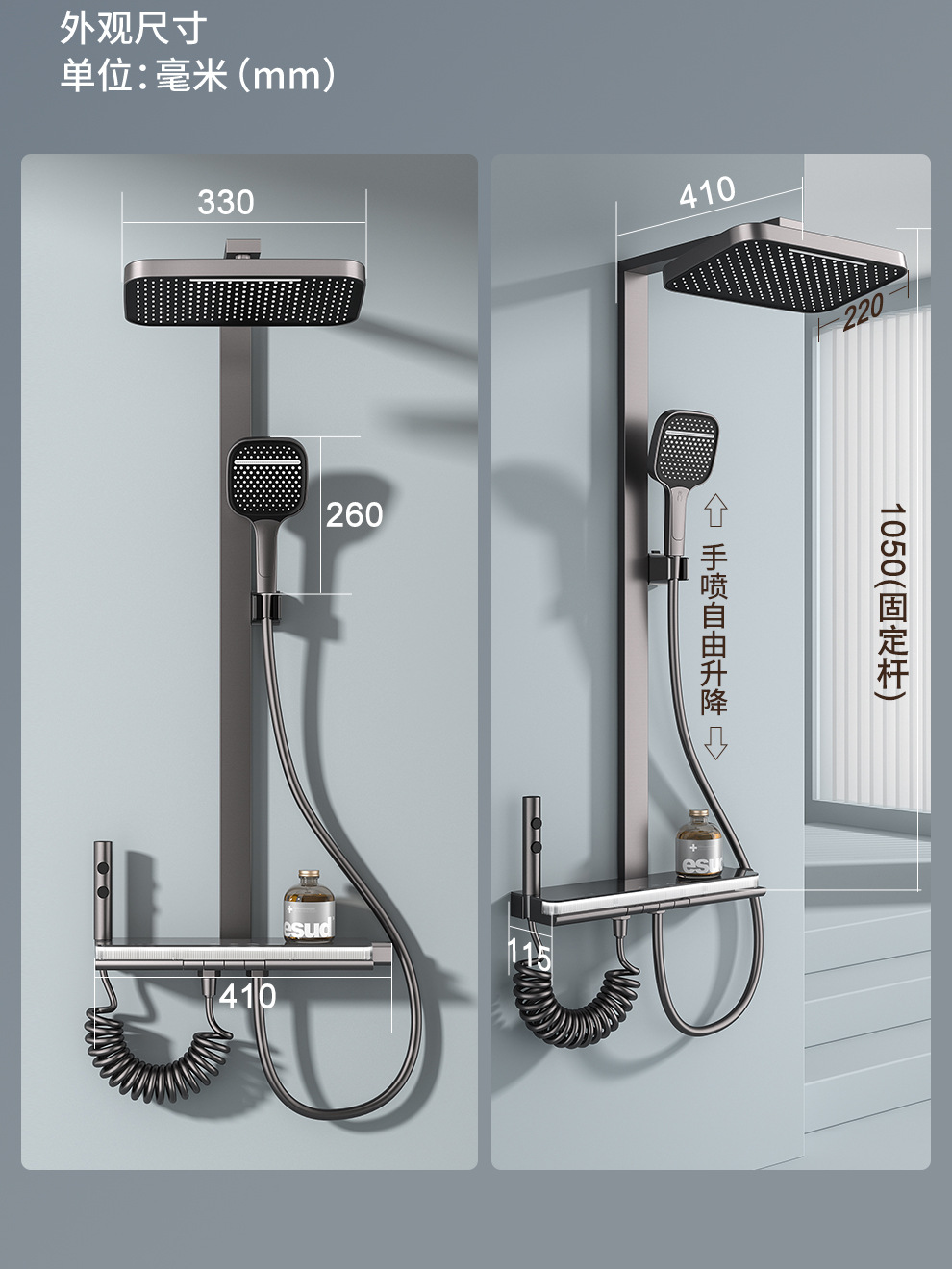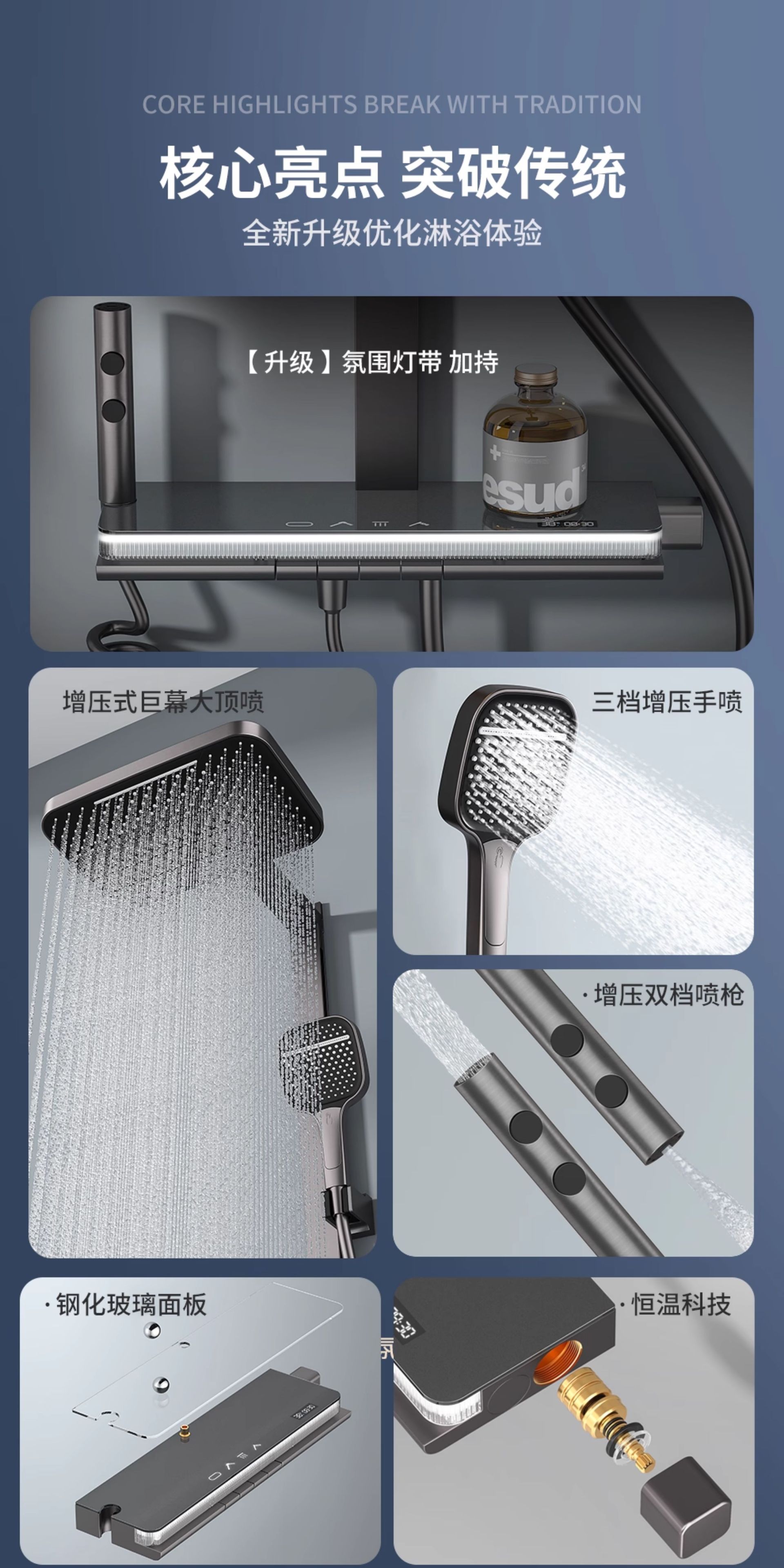 九牧大置物水镀枪灰数显恒温氛围灯全铜淋浴室花洒套装增压奶油风