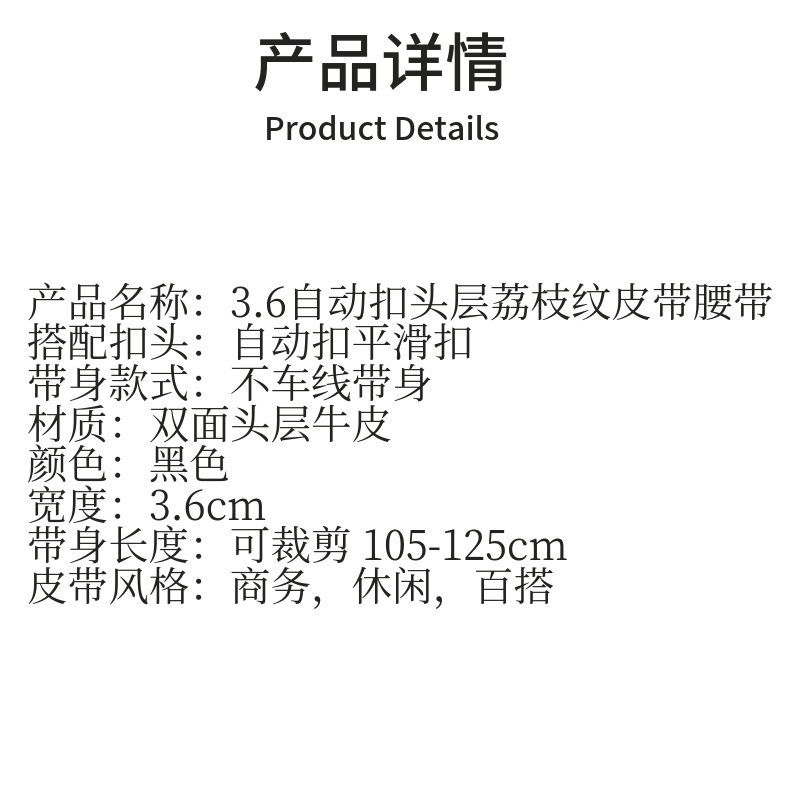 广州直发 3.6cm 自动扣头层牛皮荔枝纹皮带腰带高级感男款皮带