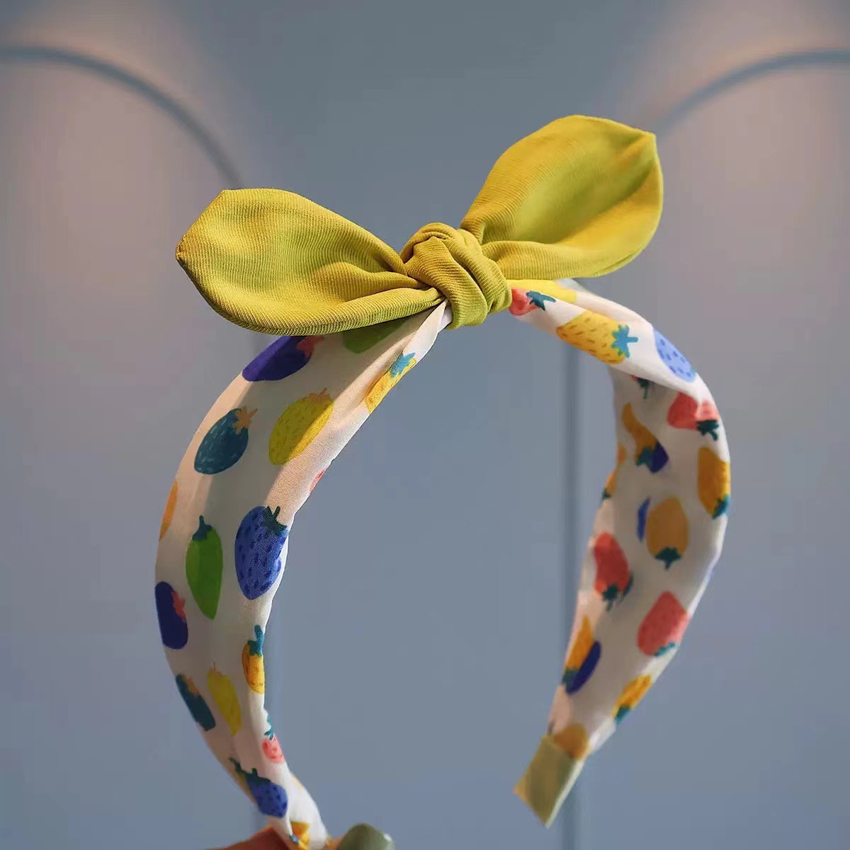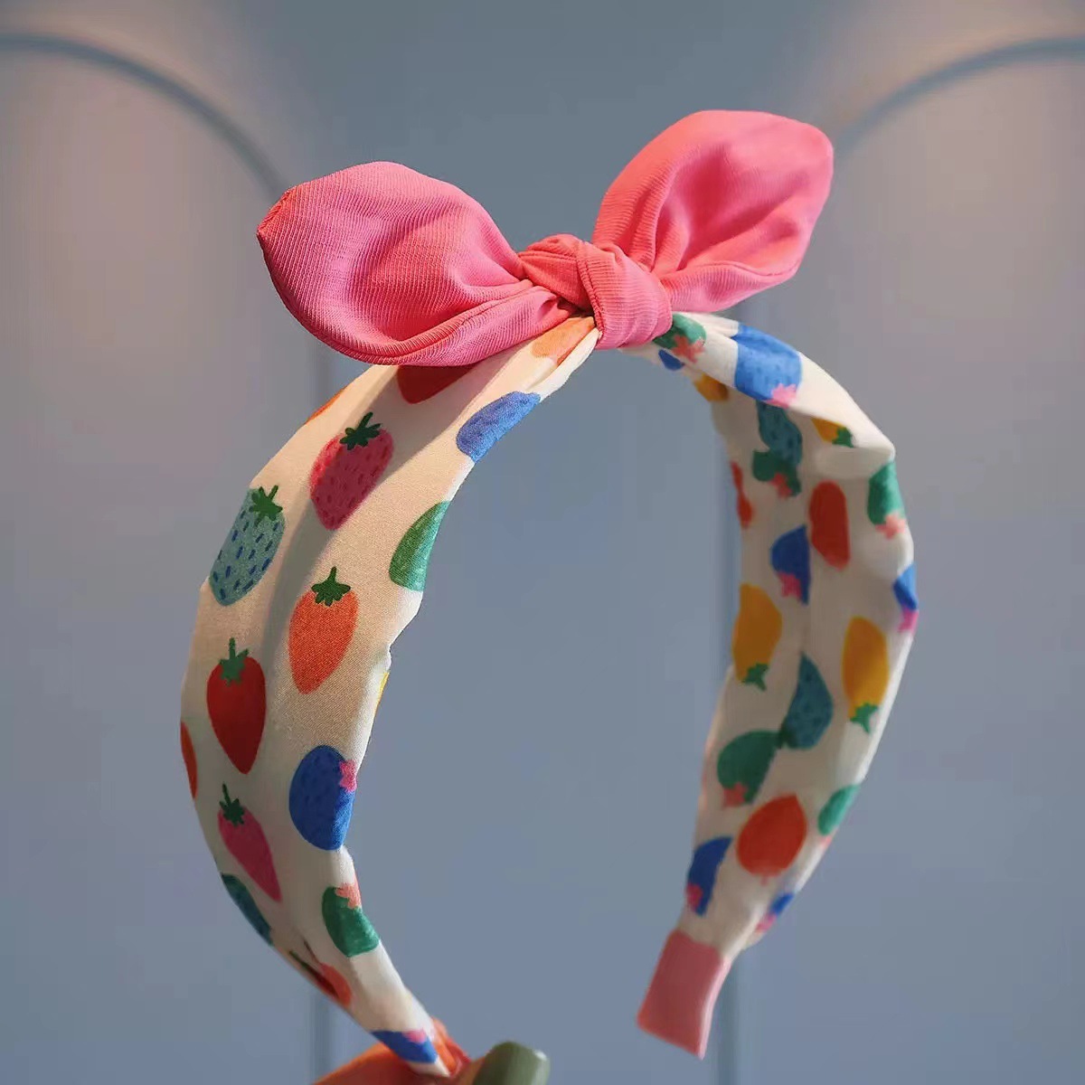 欧美草莓头窟发箍发饰跨境立体糖果色兔耳朵打结水果发箍可爱儿童