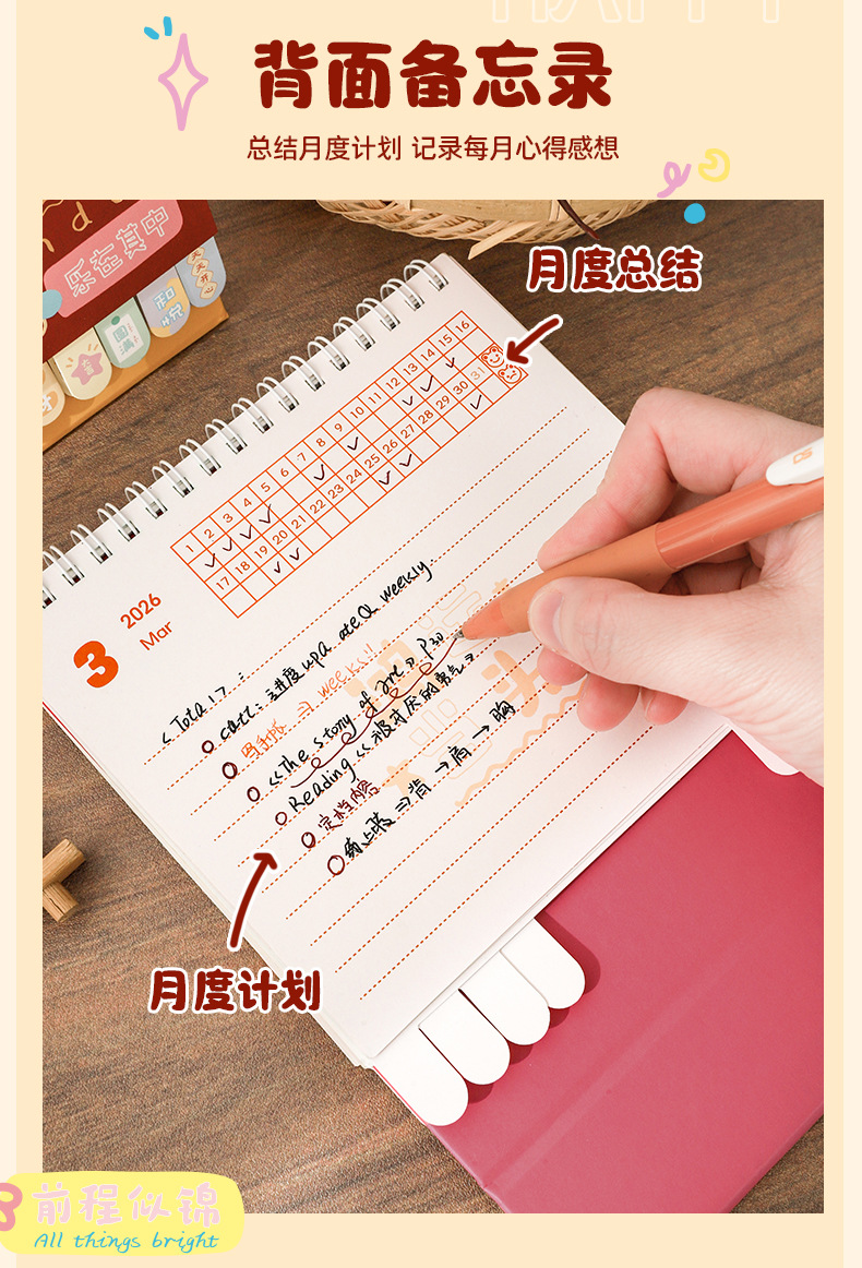 2026 记事本 计划本 倒计时 备忘录 台历 定制台历