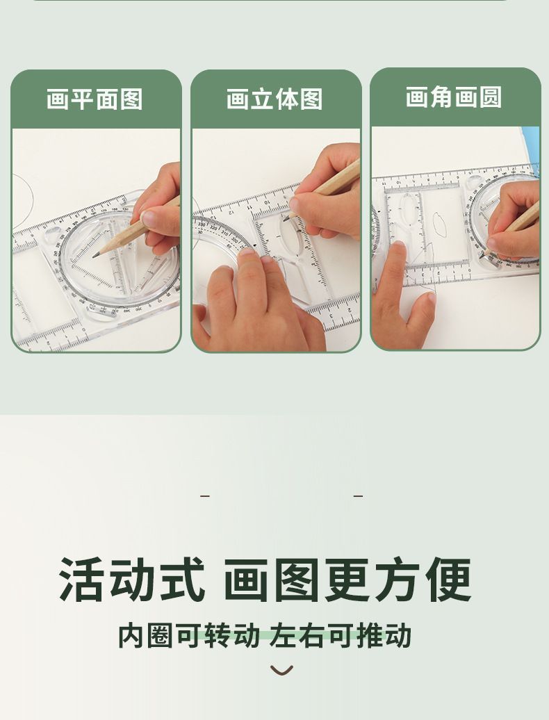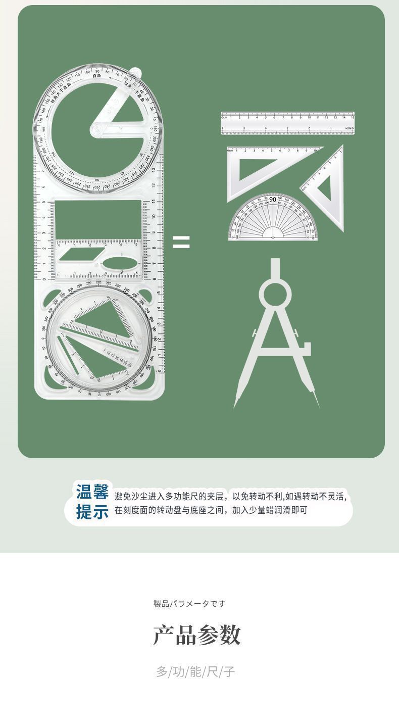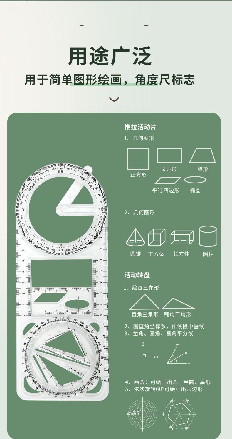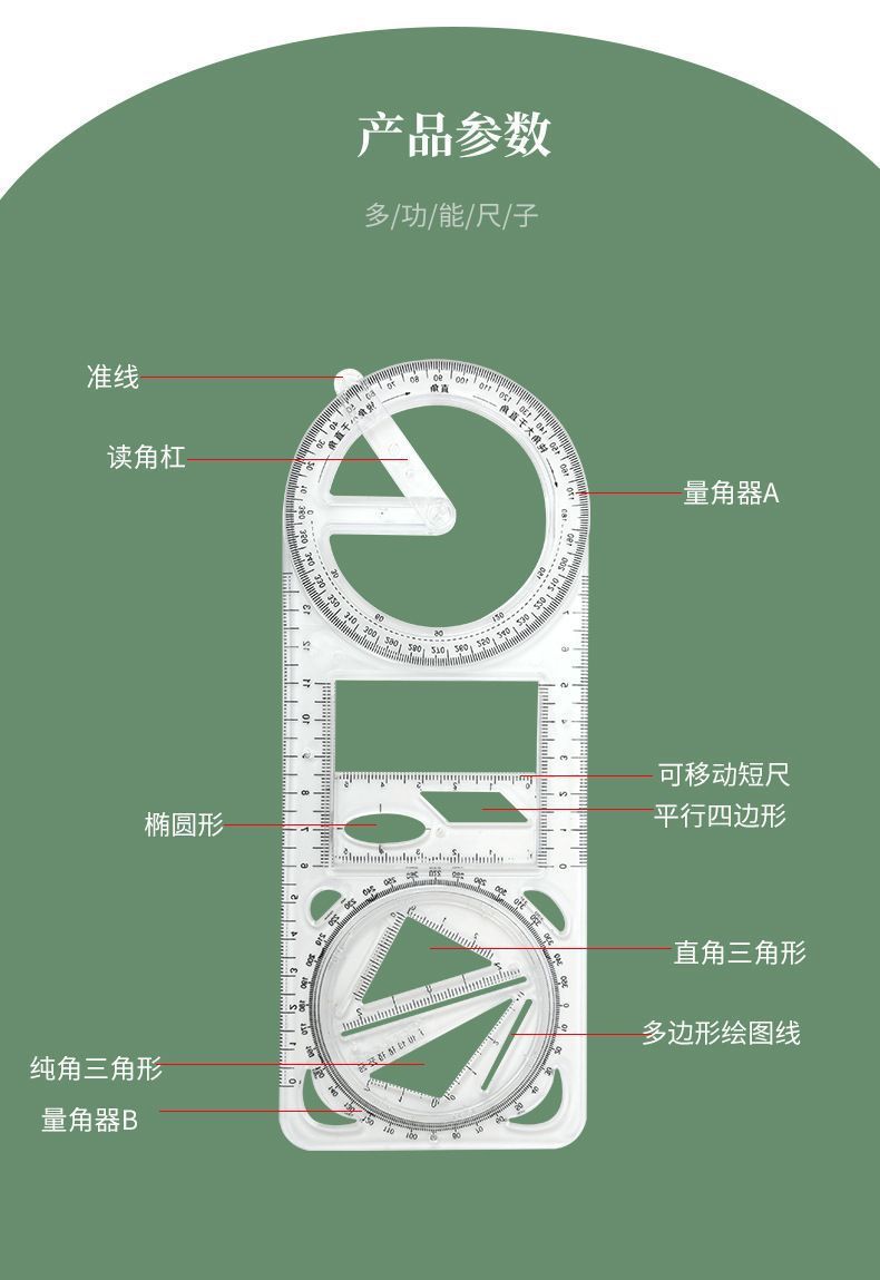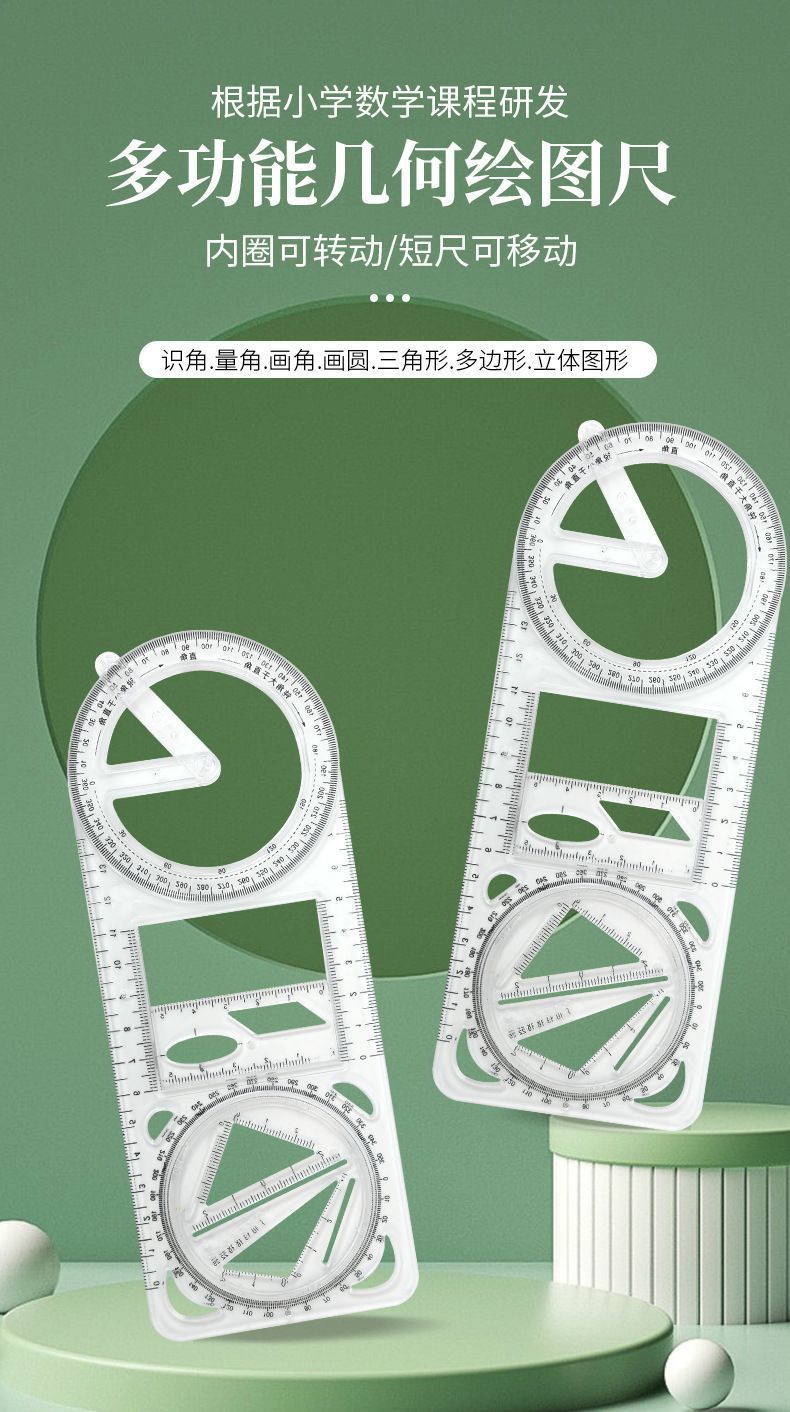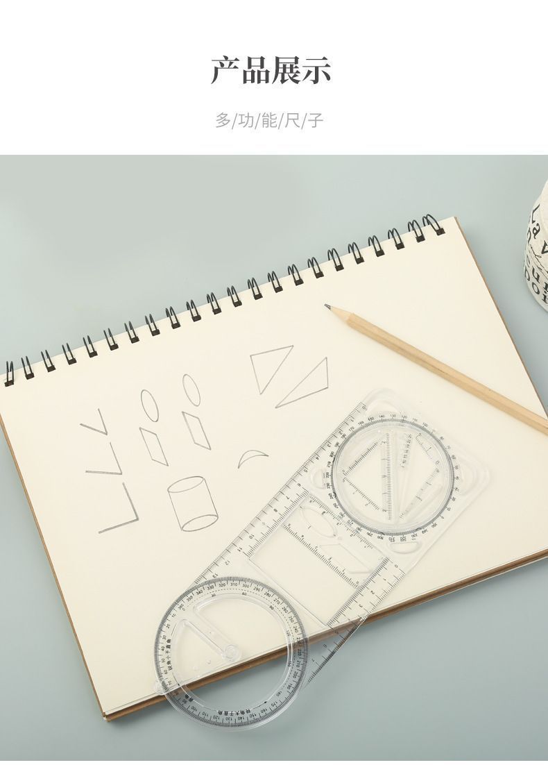 数学多功能绘图尺中小学生几何尺初高中几何函数尺三角尺量角器
