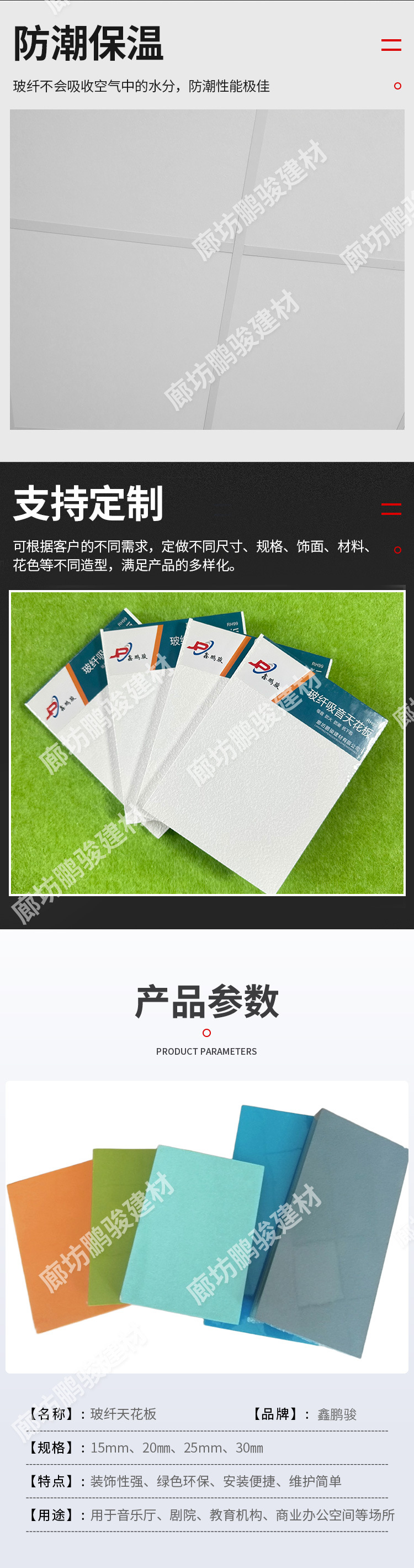 玻纤天花吸音板阻燃学校医院会议室吸音垂片装饰材料吊顶吸声板
