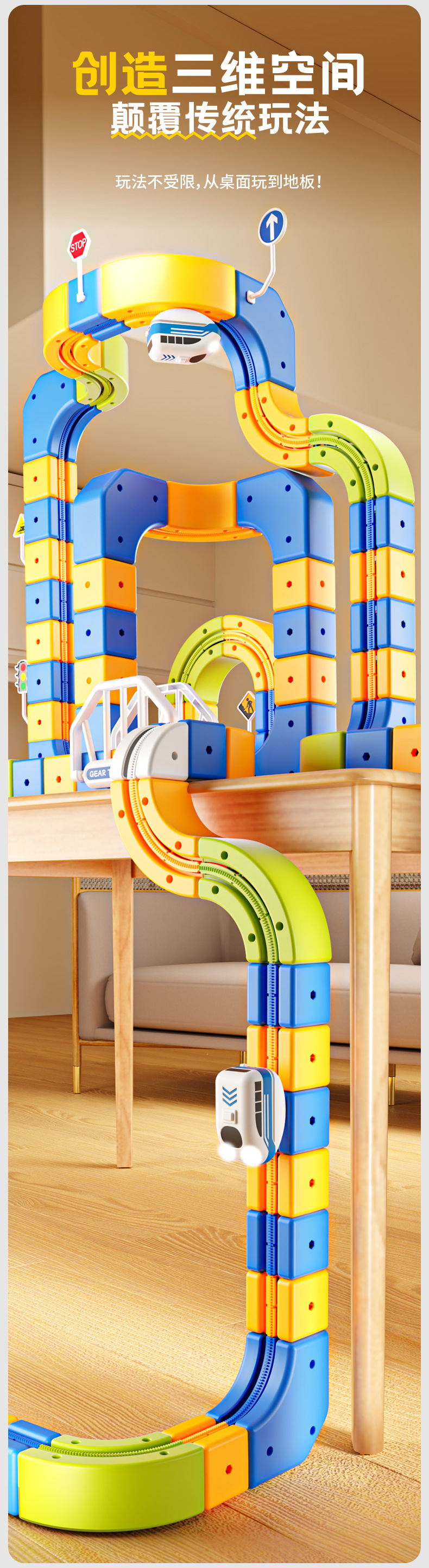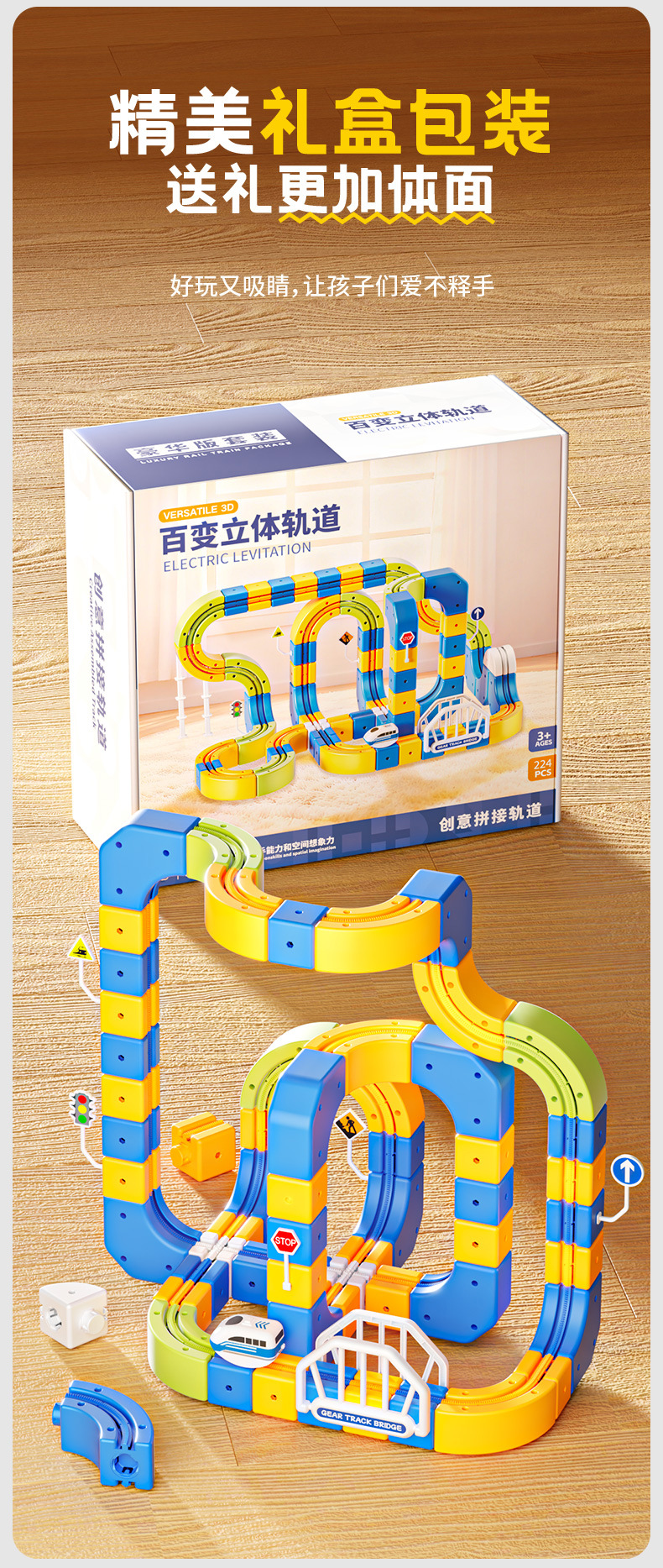 跨境磁性轨道车反重力磁力拼装积木电动高铁轨道小火车玩具批发
