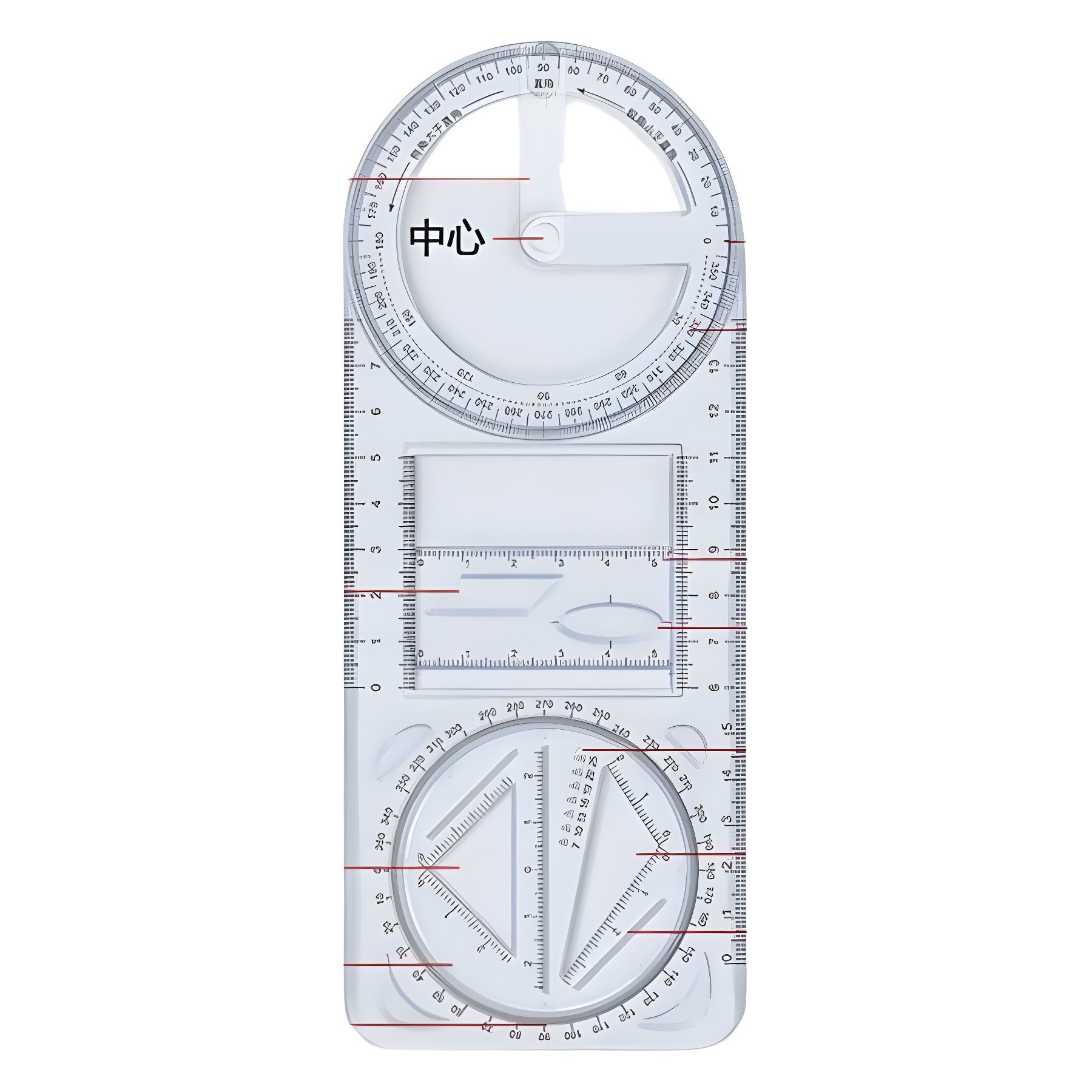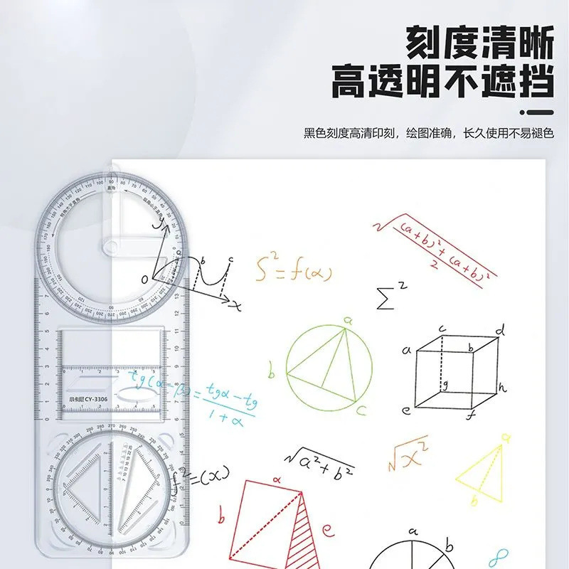 新款小学生透明多功能尺子几何图形绘图尺初高中生用可旋转绘图尺