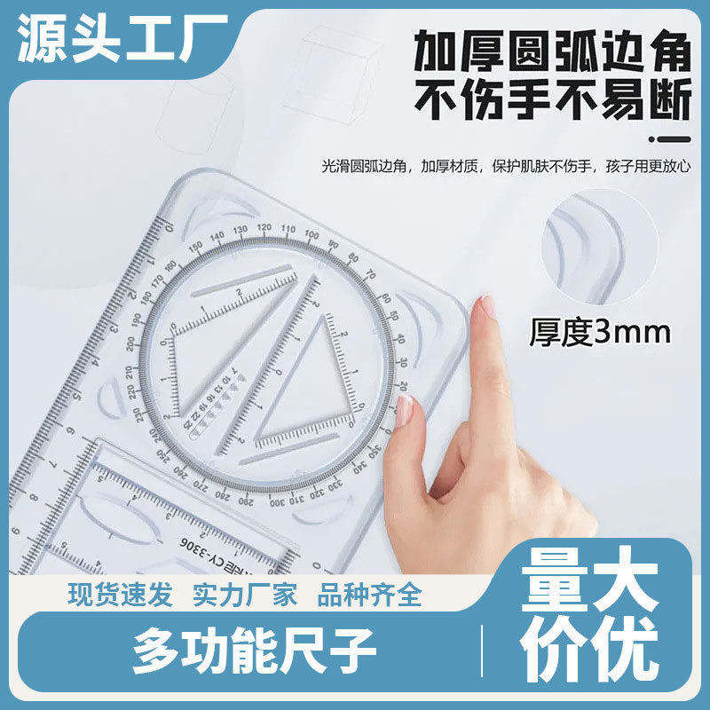新款小学生透明多功能尺子几何图形绘图尺初高中生用可旋转绘图尺,批发价,价格:0.62,厂家直销,新款小学生透明多功能尺子几何图形绘图尺初高中生用可旋转绘图尺,免费拿样。