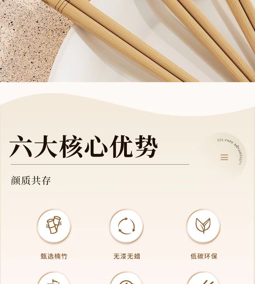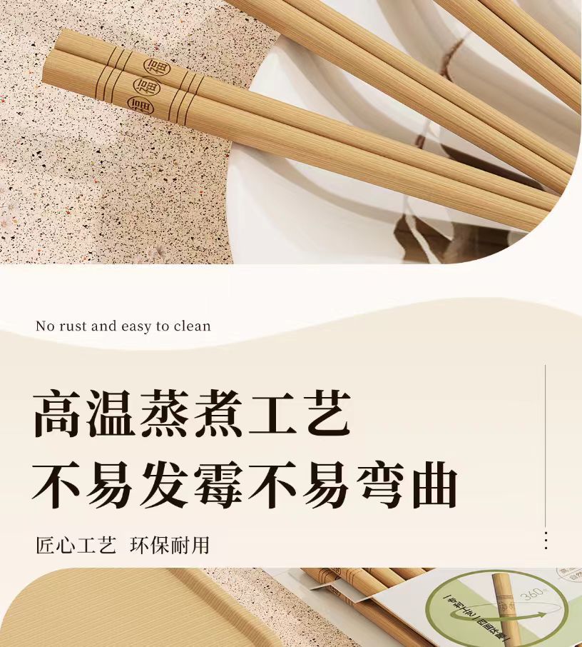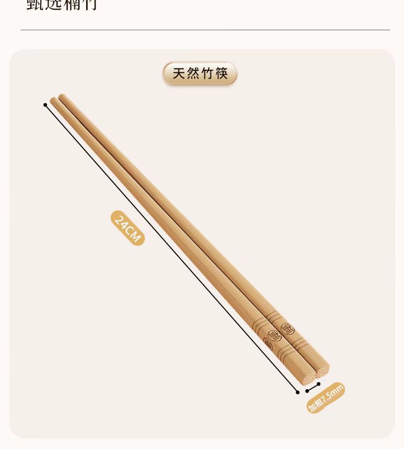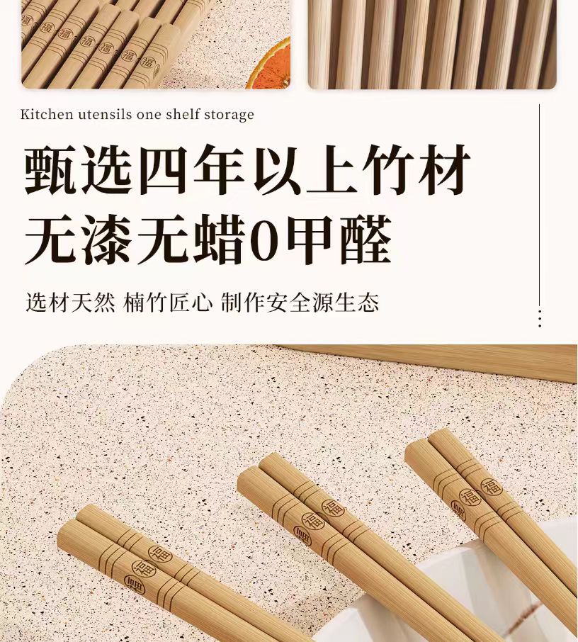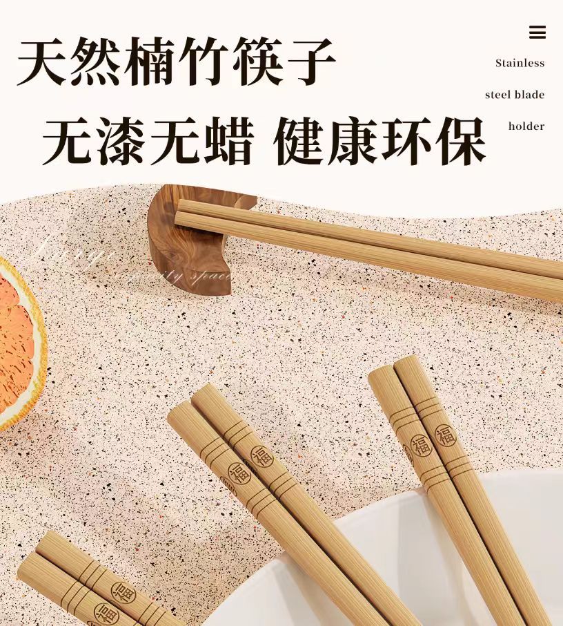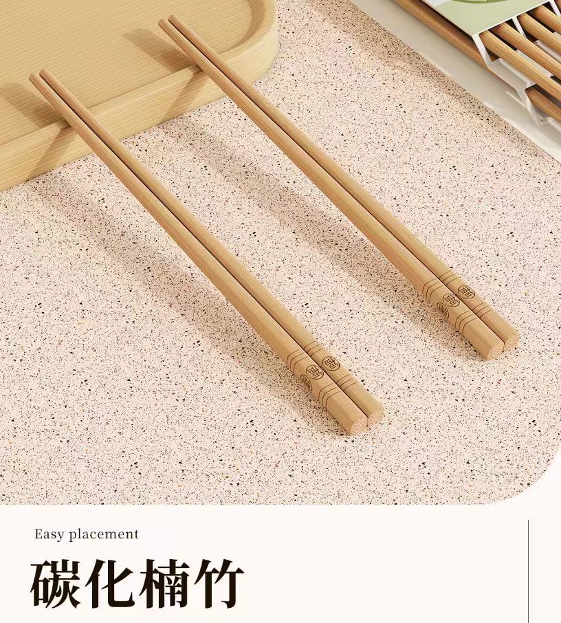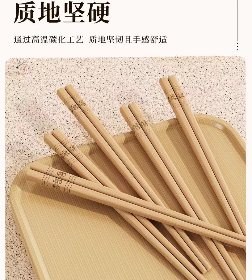 四面福筷家用筷子防霉天然楠竹筷子印花筷耐高温碳化高档餐具