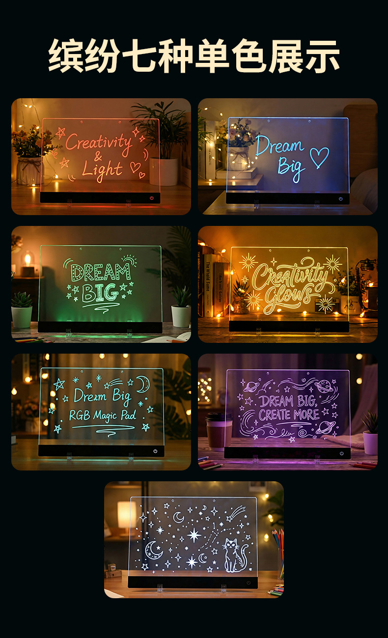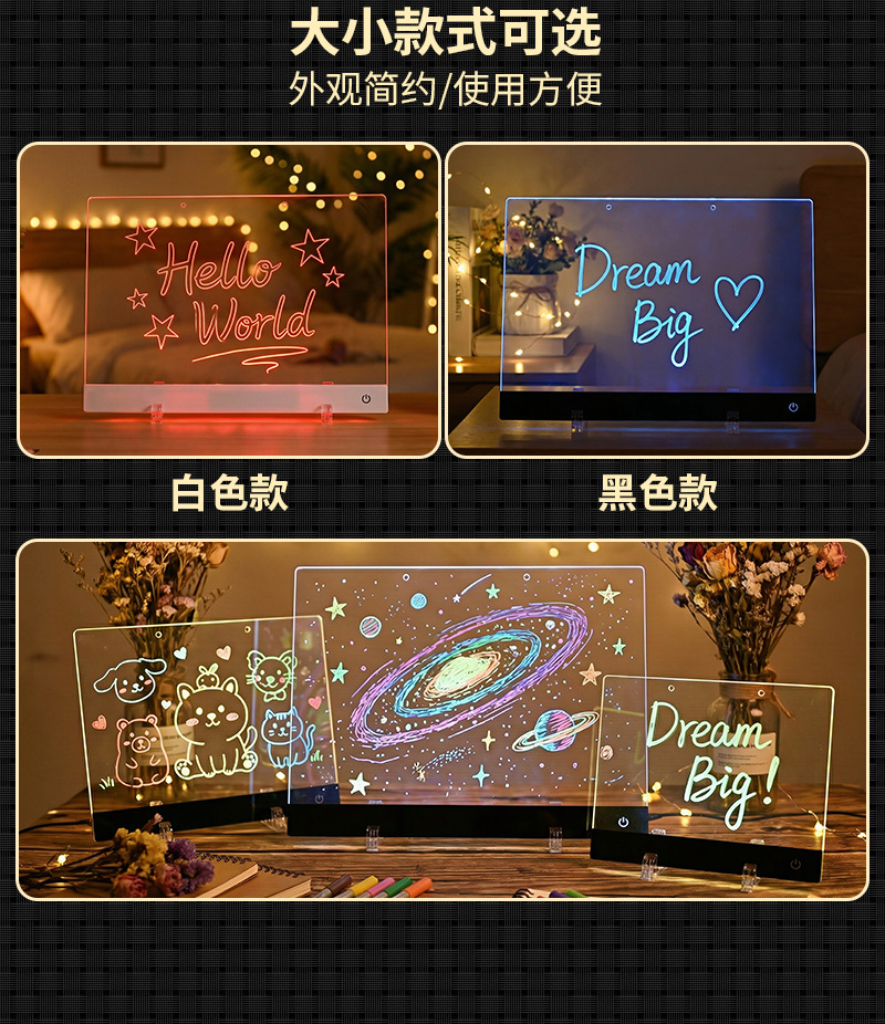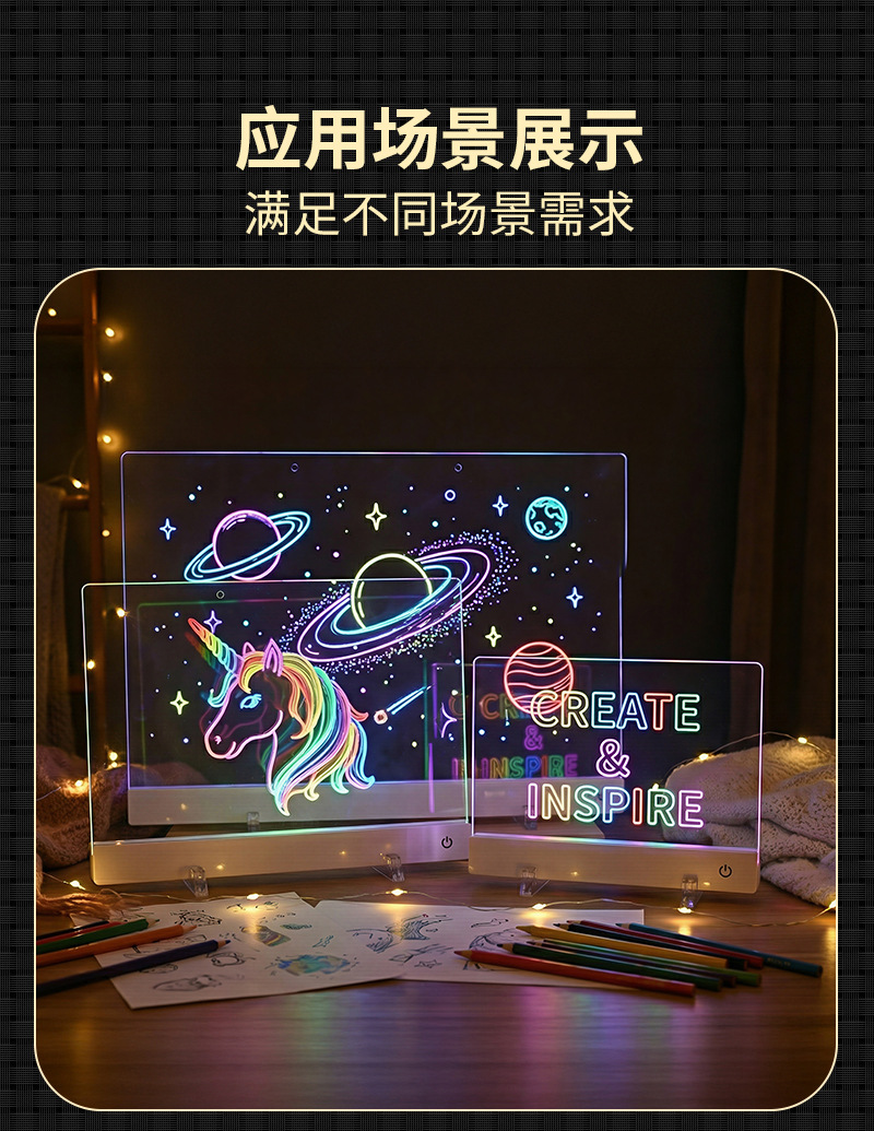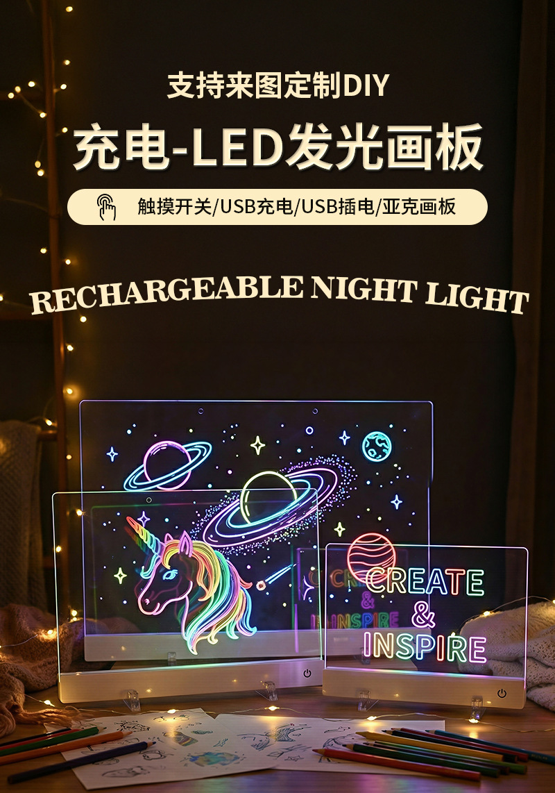 儿童发光可擦写diy画板防刮花手工玩具写字板生日礼物充电小夜灯