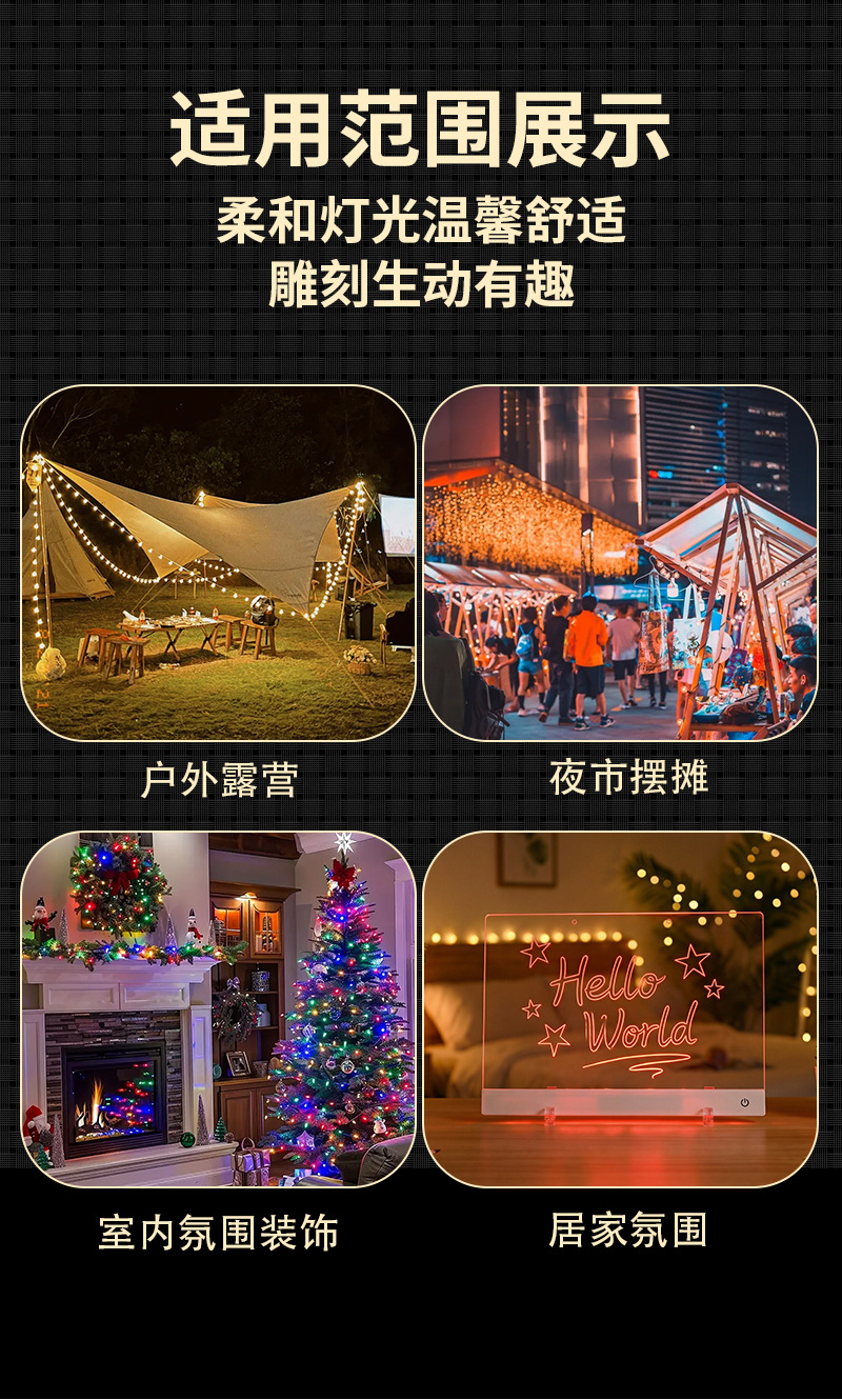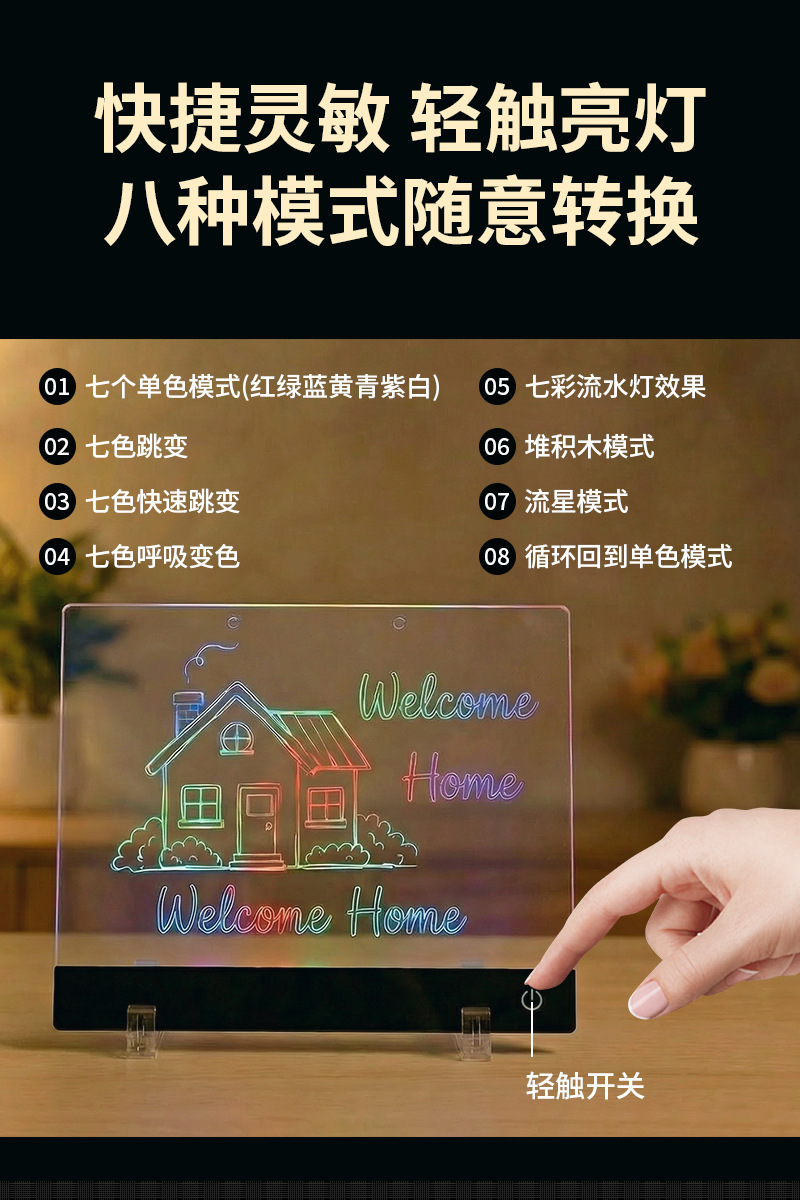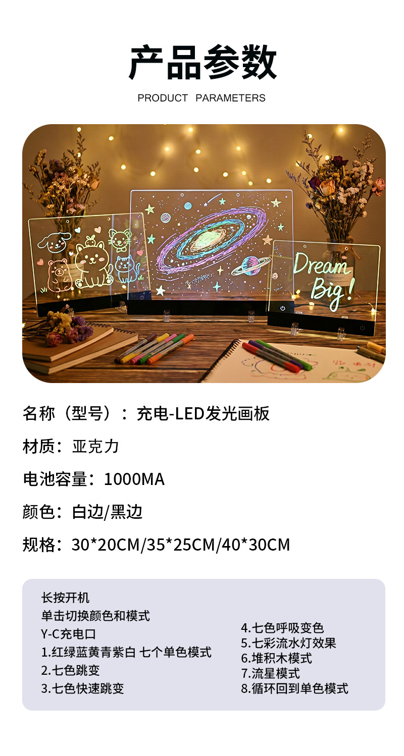 儿童发光可擦写diy画板防刮花手工玩具写字板生日礼物充电小夜灯