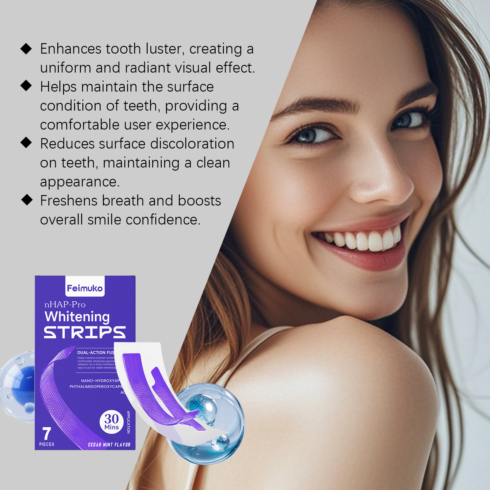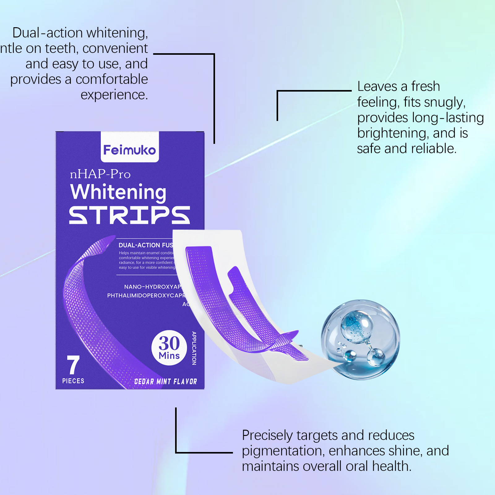 Feimuko 紫色亮泽牙贴 温和清洁牙齿表面光泽清新日常护理牙贴