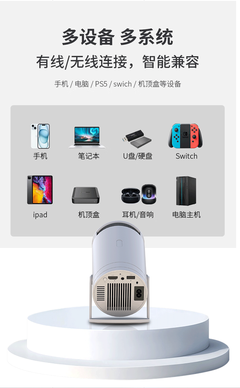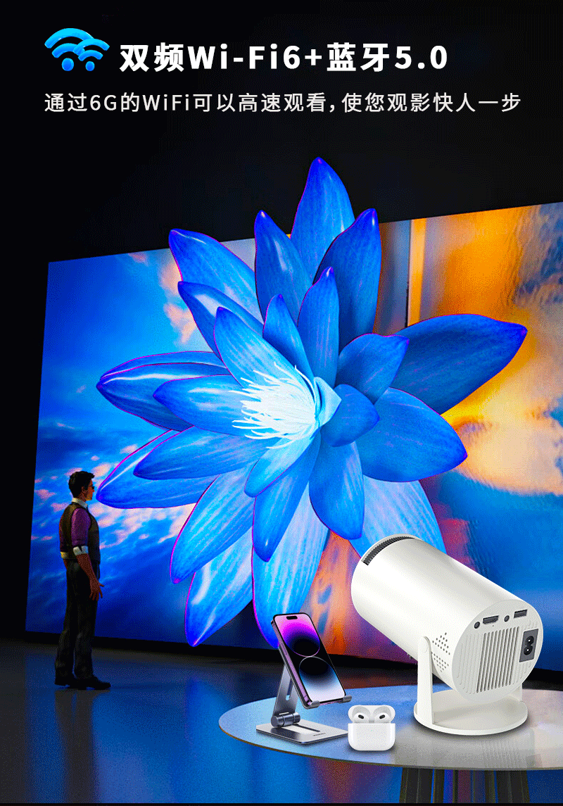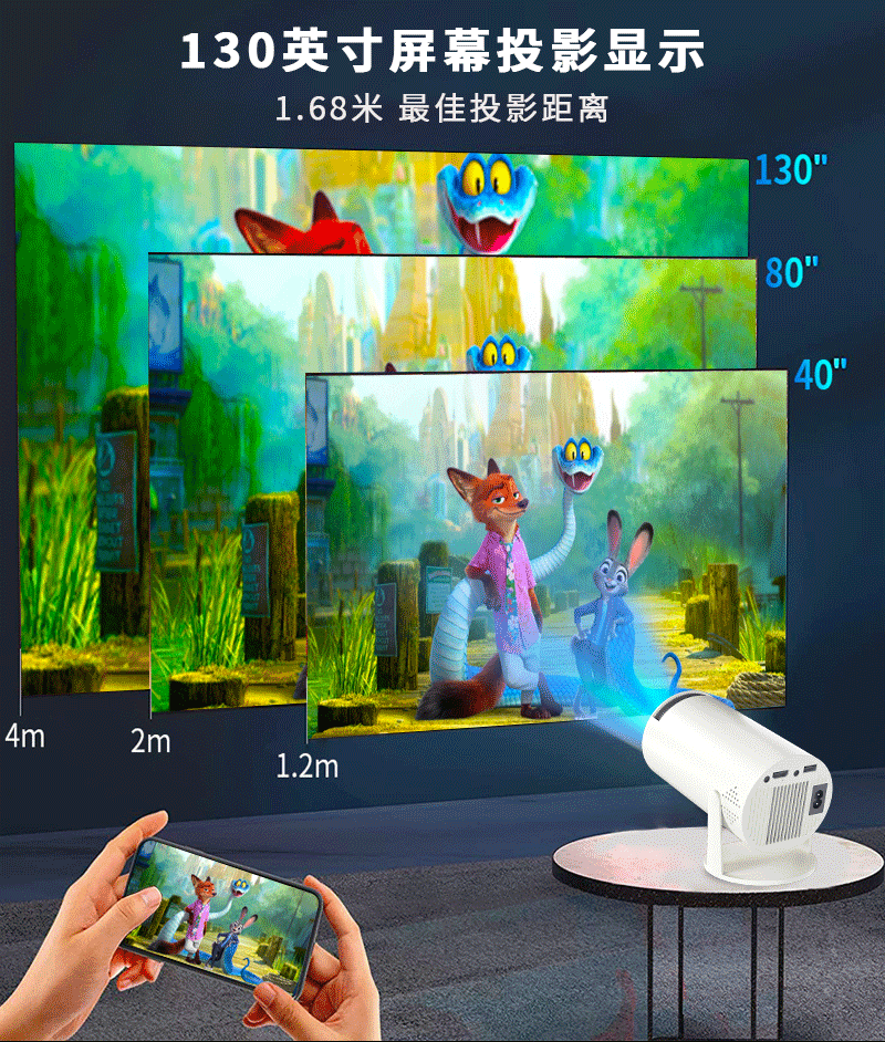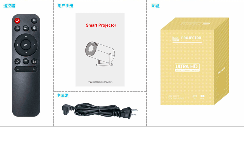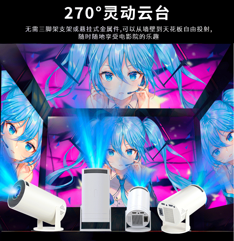 跨境hy300投影仪同屏版便携迷你家用高清投影仪炮筒工厂Youtube