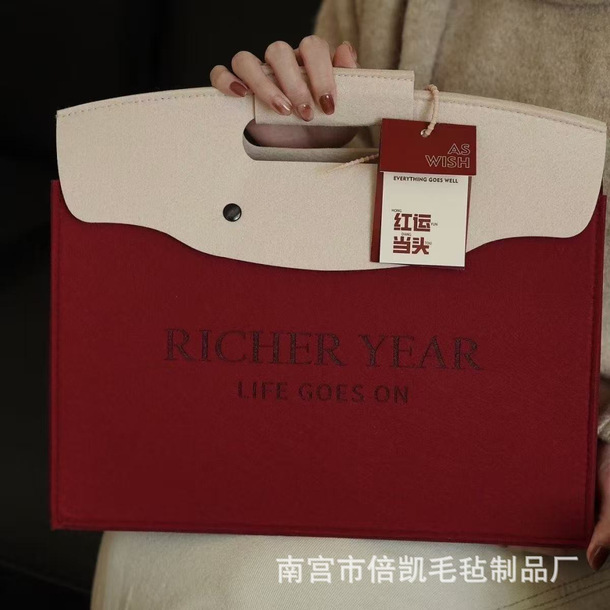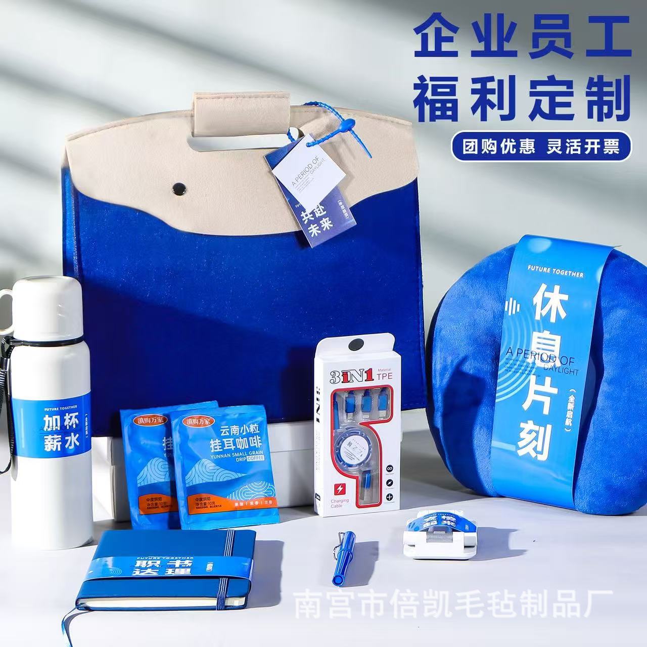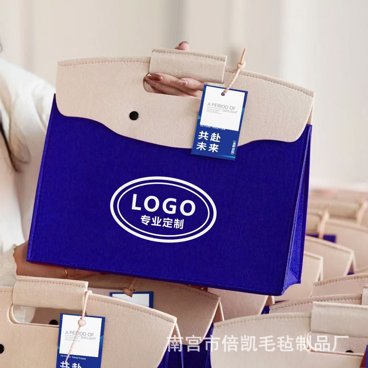 厂家批发毛毡包新款伴手礼包蓝色企业logo商务礼品包周年庆礼品袋