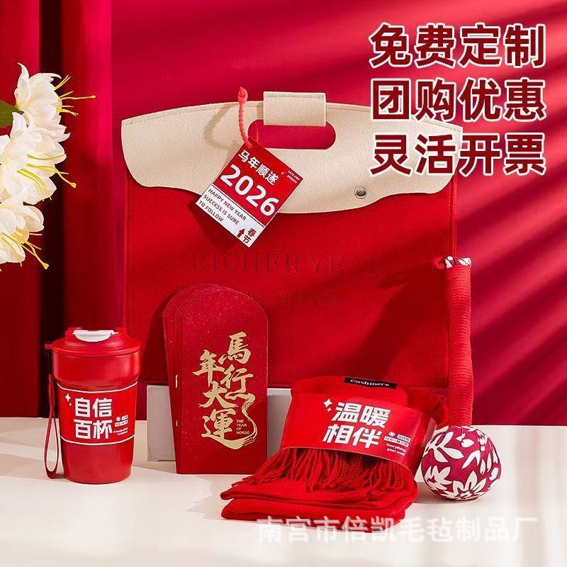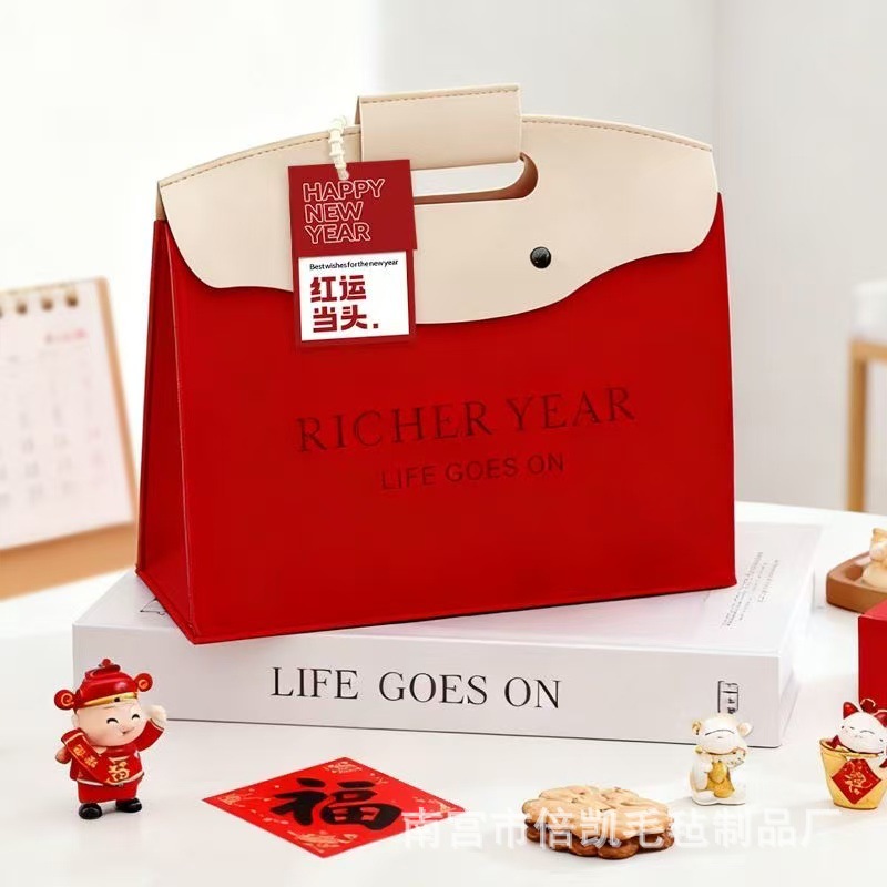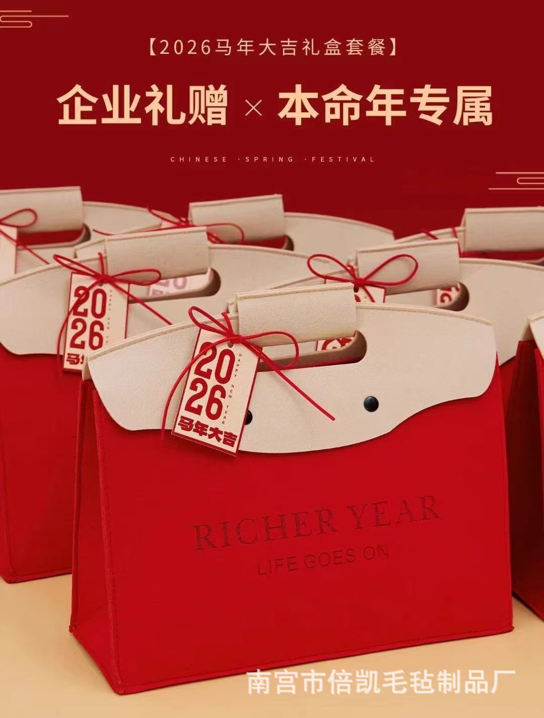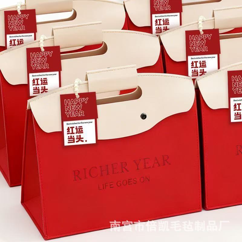 厂家批发毛毡包新款伴手礼包蓝色企业logo商务礼品包周年庆礼品袋