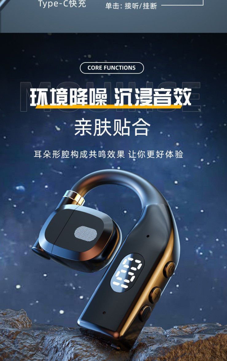 挂耳式无线蓝牙耳机可选择左右耳通用超长待机长续航单耳舒适佩戴