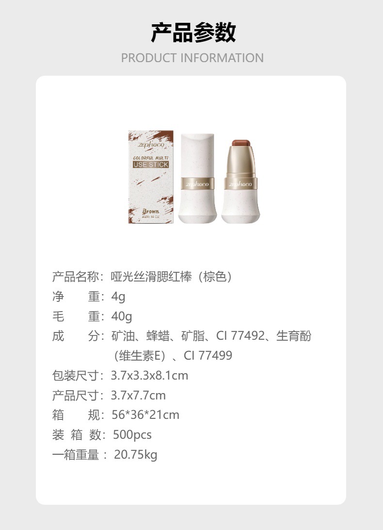 zephoco 哑光丝滑腮红棒(棕色) 自然显色日常红润滋润丝滑显色,批发价,价格:10,厂家直销,zephoco 哑光丝滑腮红棒(棕色) 自然显色日常红润滋润丝滑显色,免费拿样。