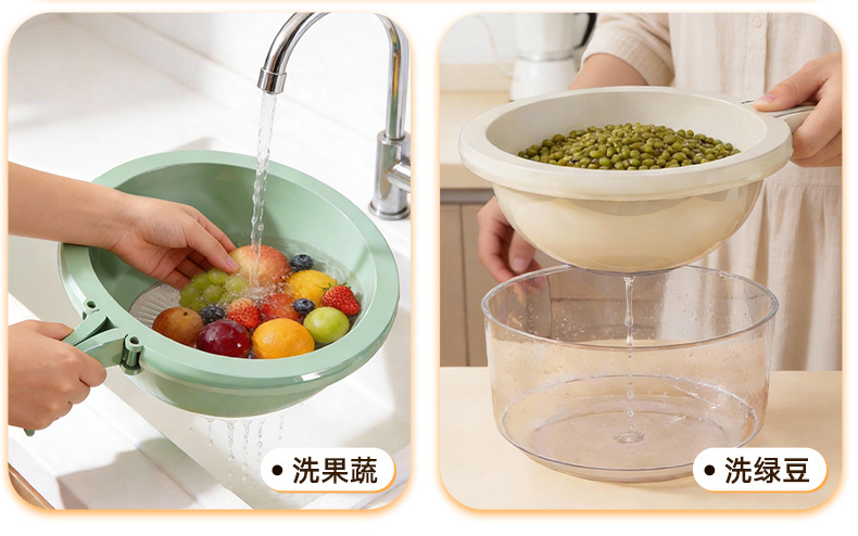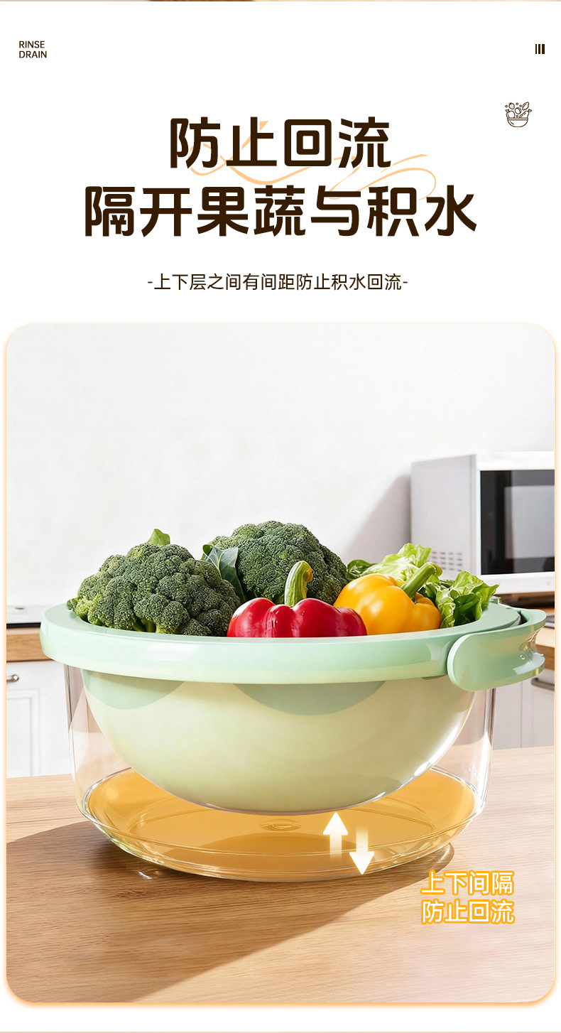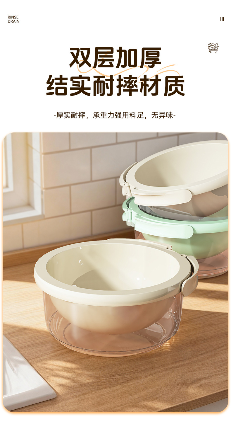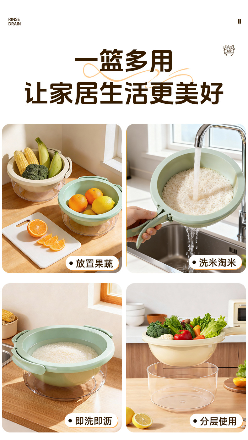 简约风双层洗菜盆食品级多用清洗果蔬沥水篮加厚厨房沥水盆批发