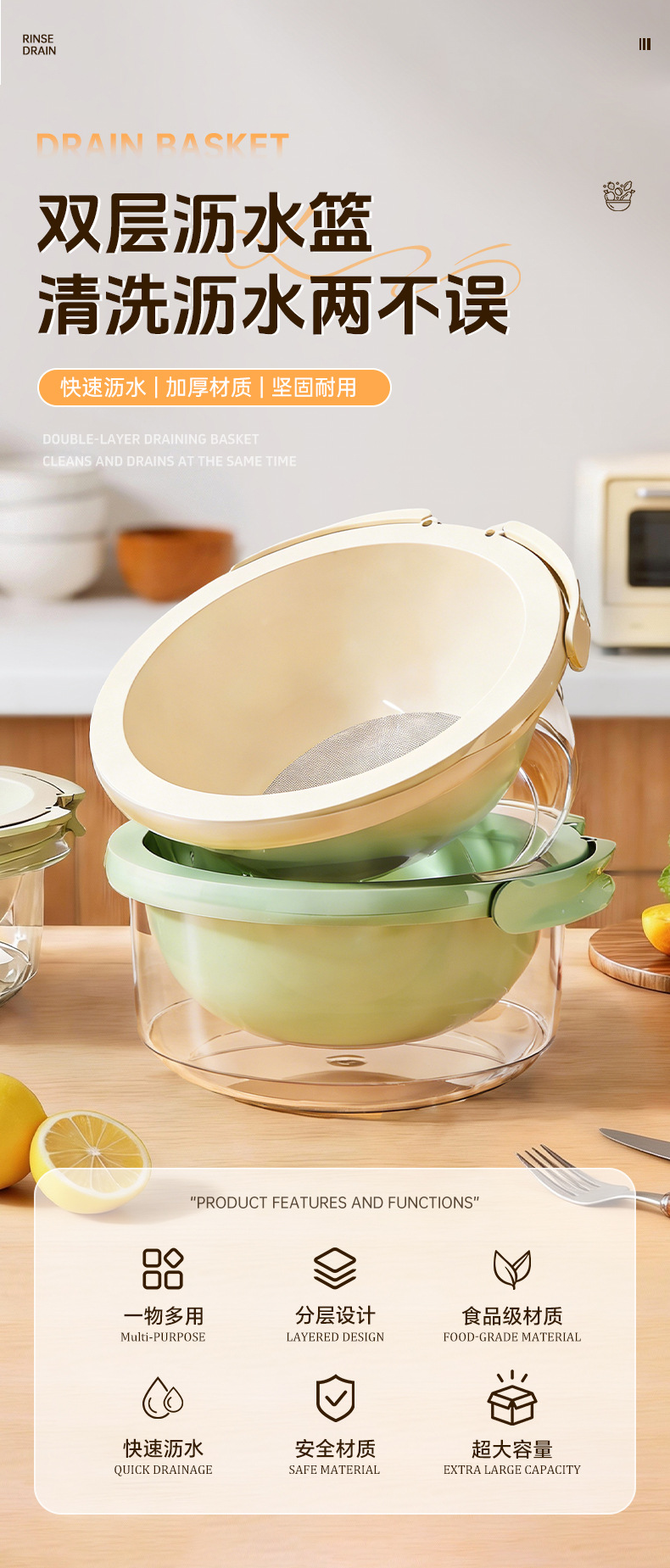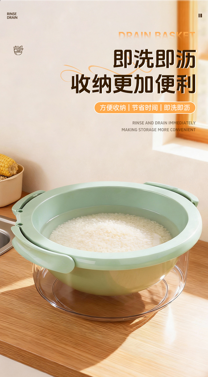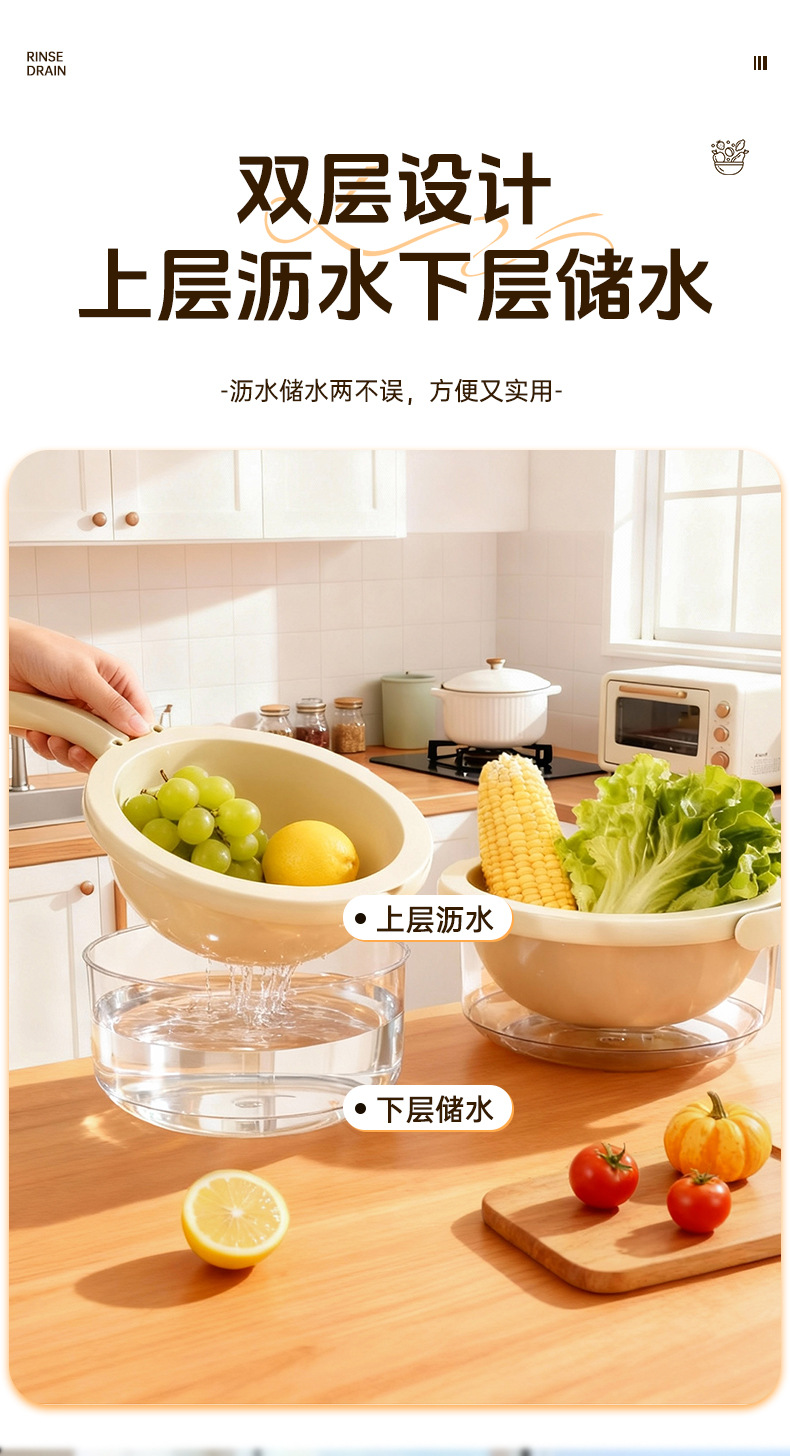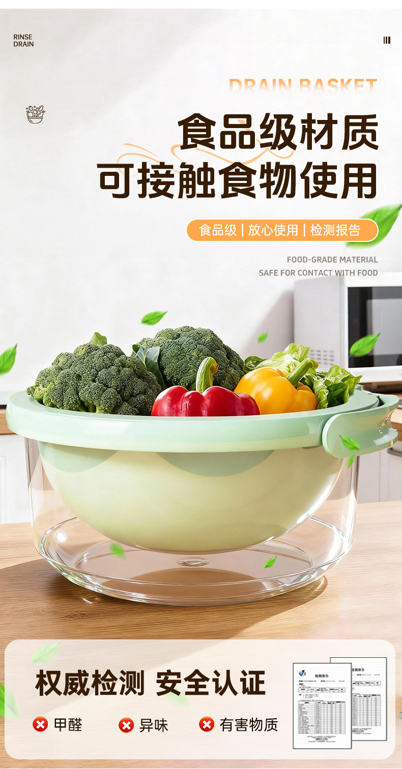 简约风双层洗菜盆食品级多用清洗果蔬沥水篮加厚厨房沥水盆批发