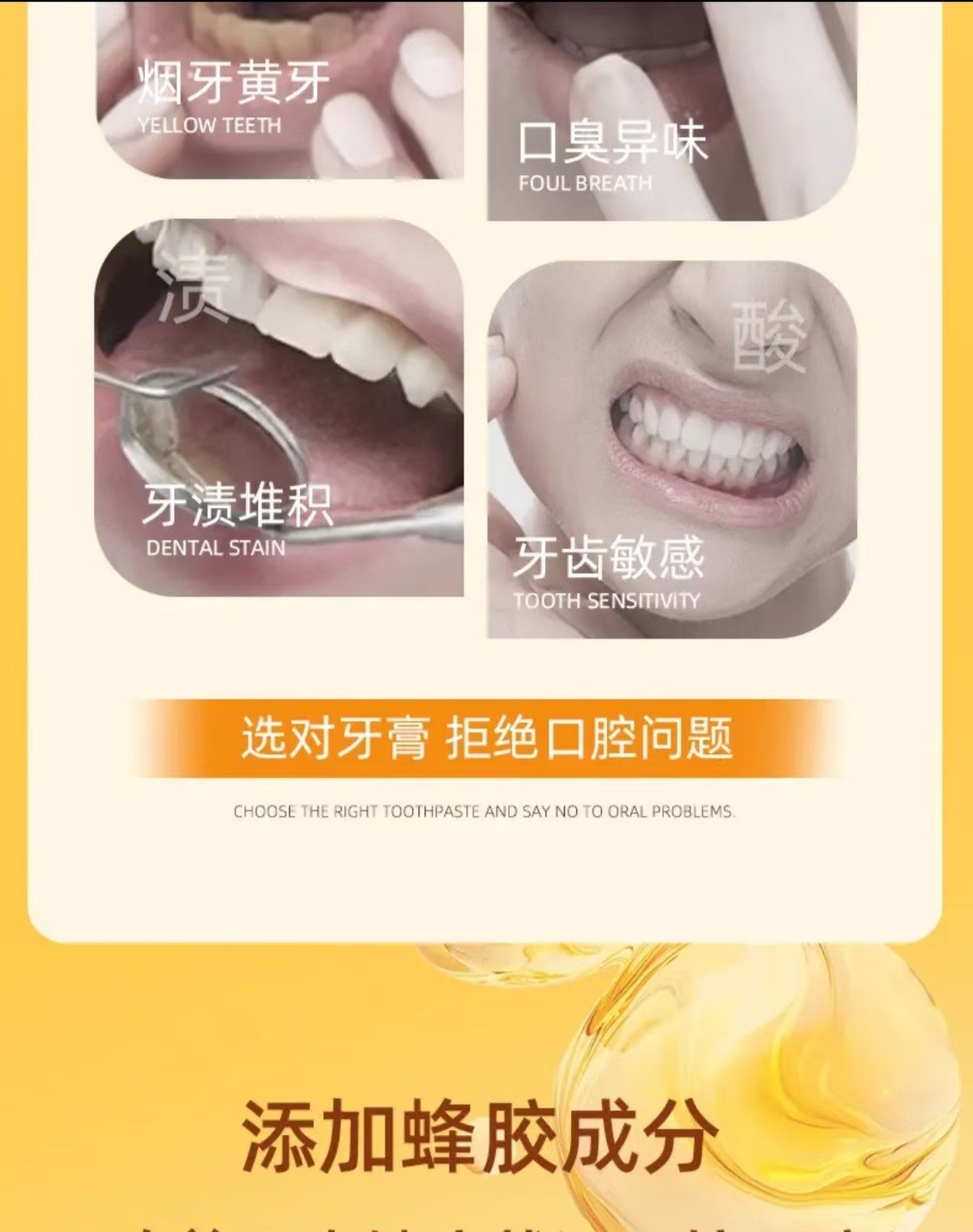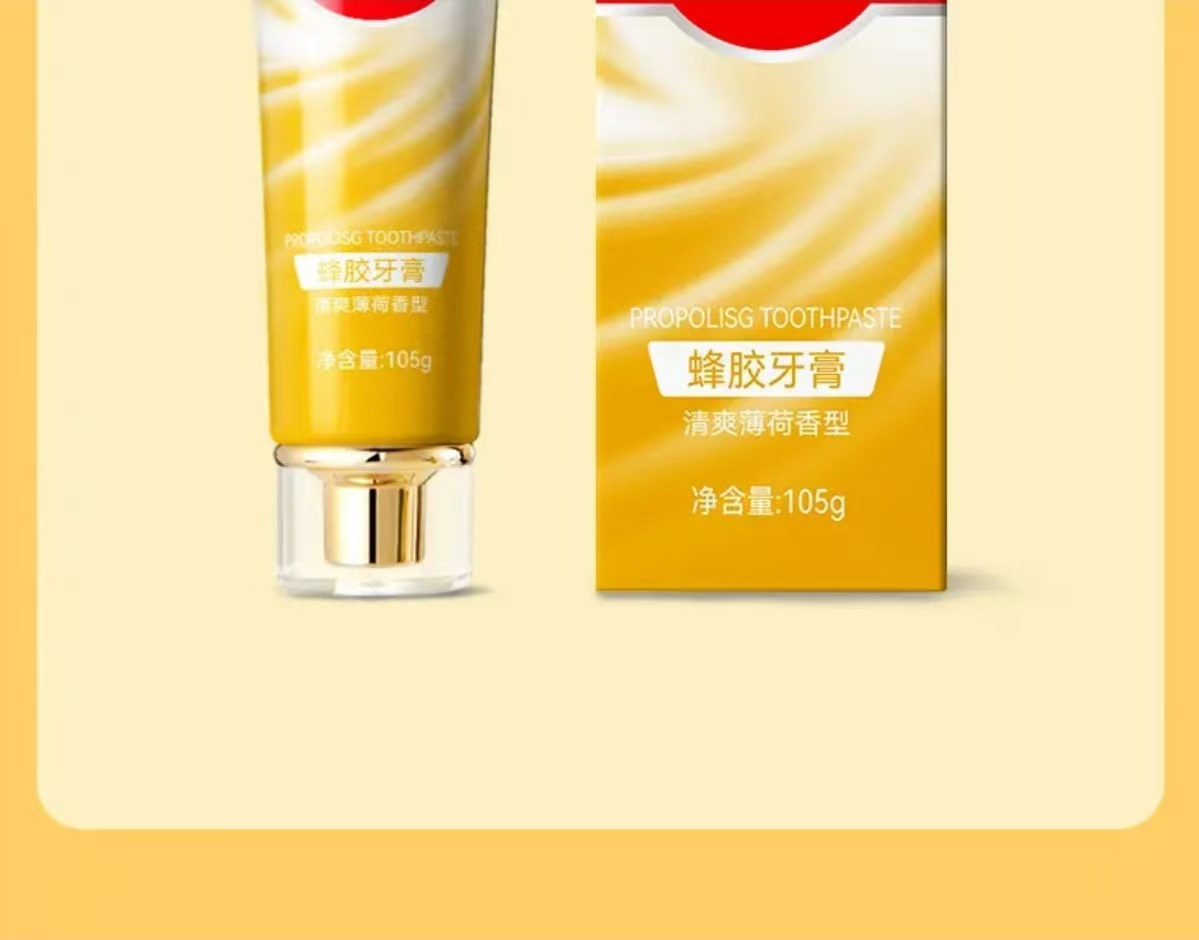 牙白金蜂胶牙膏去渍亮白清新口气去除牙黄口臭蜂胶养护牙齿批发