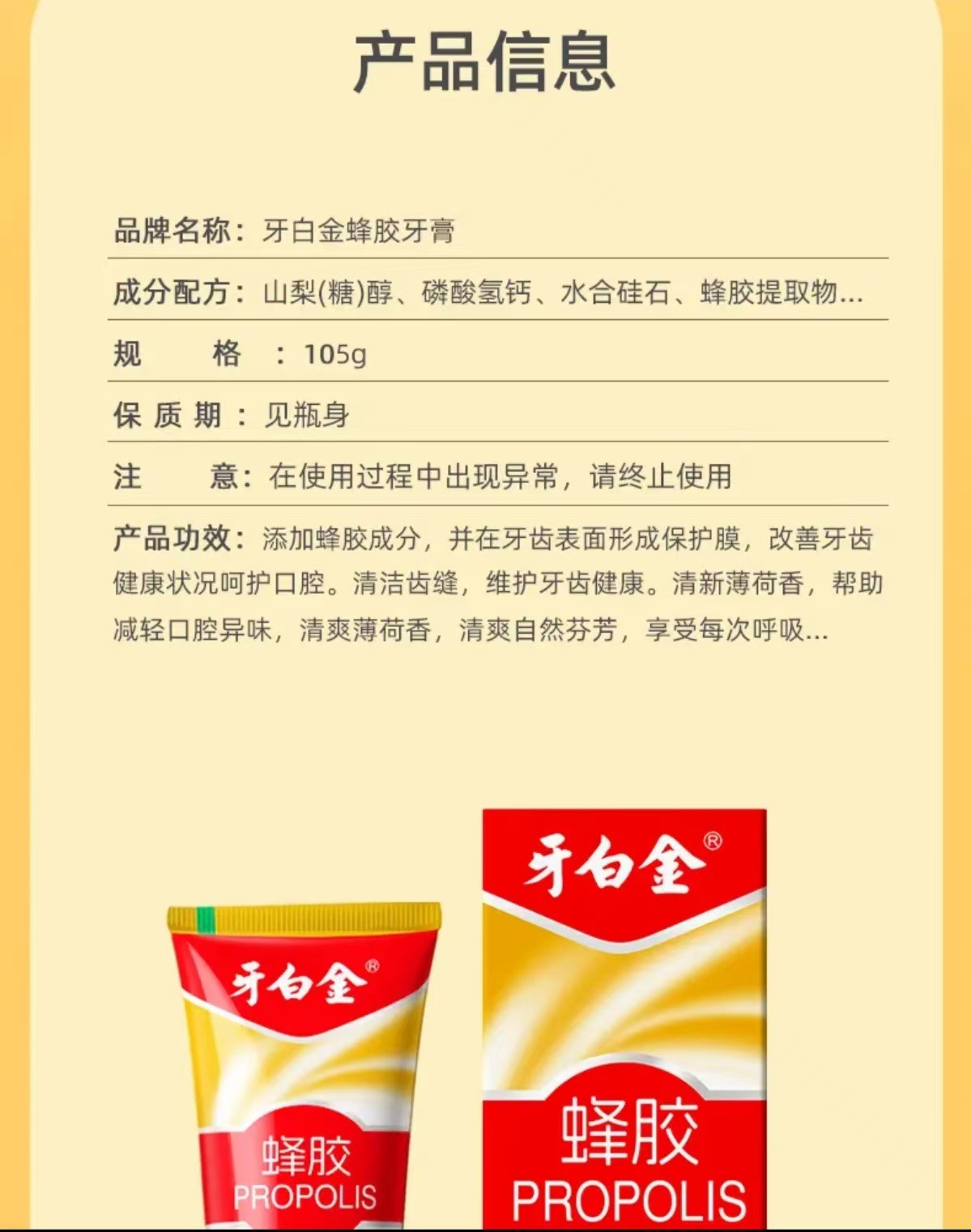 牙白金蜂胶牙膏
