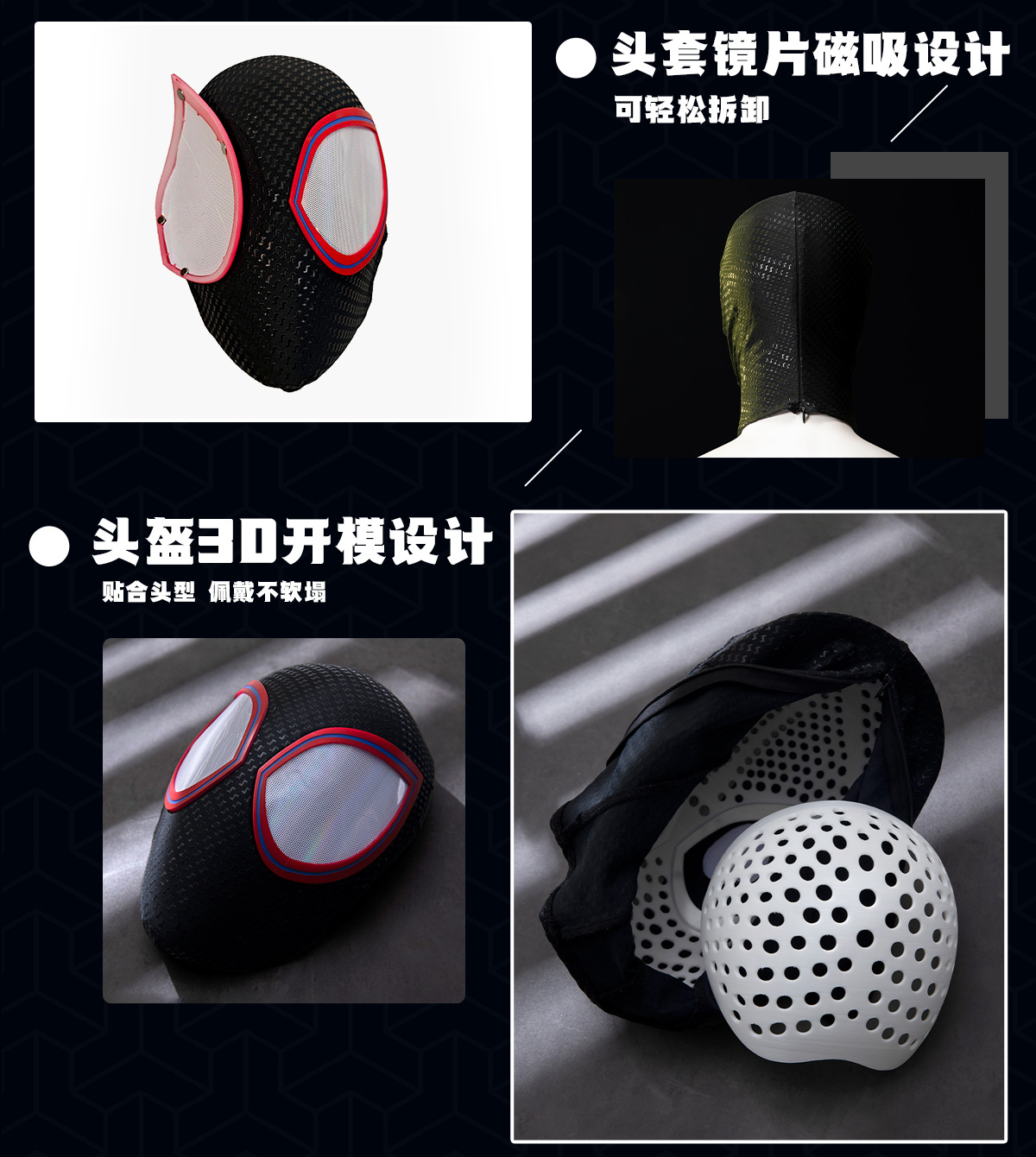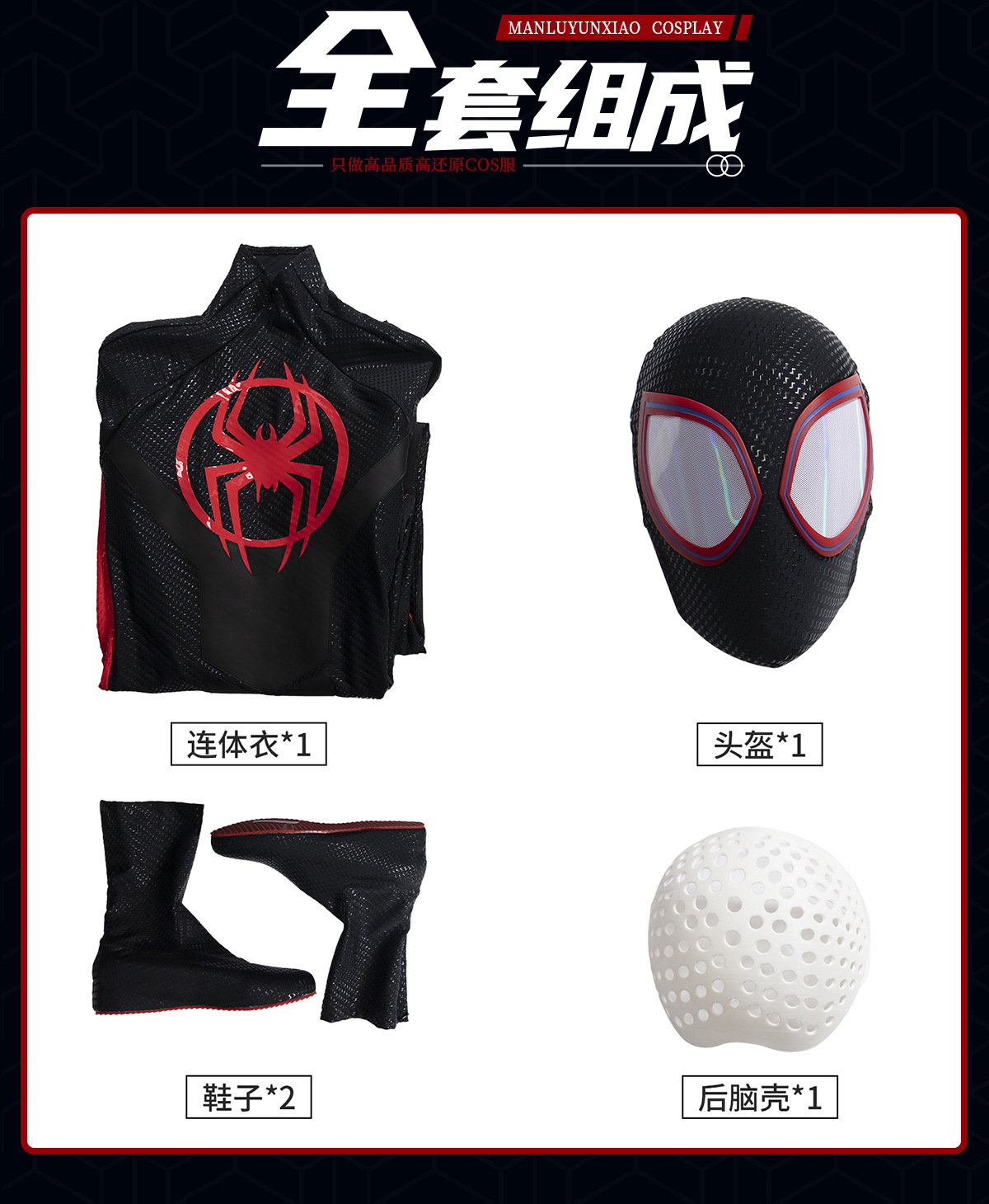 推荐理由:小黑蛛迈尔斯蜘蛛侠cos服超还原登场!全身精致胶印复刻战衣纹路,标志性logo质感拉满超吸睛。头盔可拆卸穿脱便捷,眼眶磁吸设计,整体做工扎实质感在线,轻松化身街头蜘蛛侠,漫展拍照出片率百分百