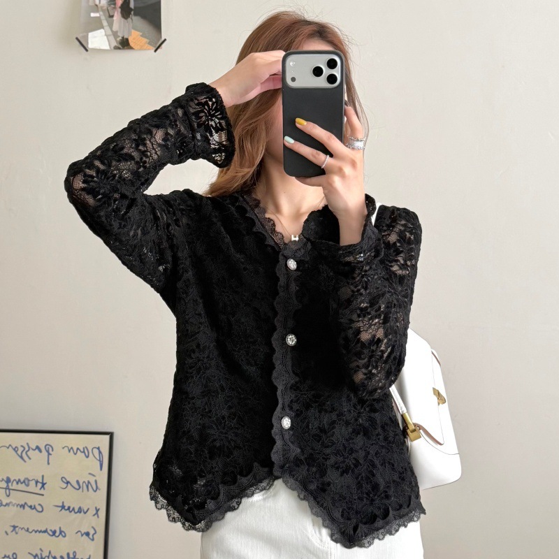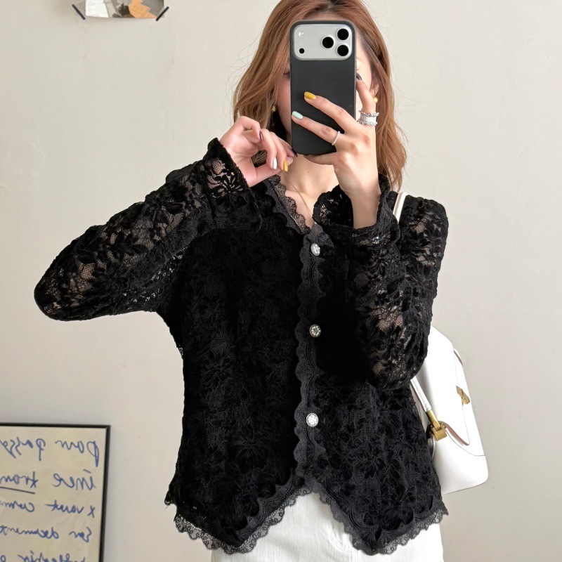 韩版气质蕾丝长袖打底衫2026春季新款修身显瘦薄款洋气小衫女,批发价,价格:76,厂家直销,韩版气质蕾丝长袖打底衫2026春季新款修身显瘦薄款洋气小衫女,免费拿样。