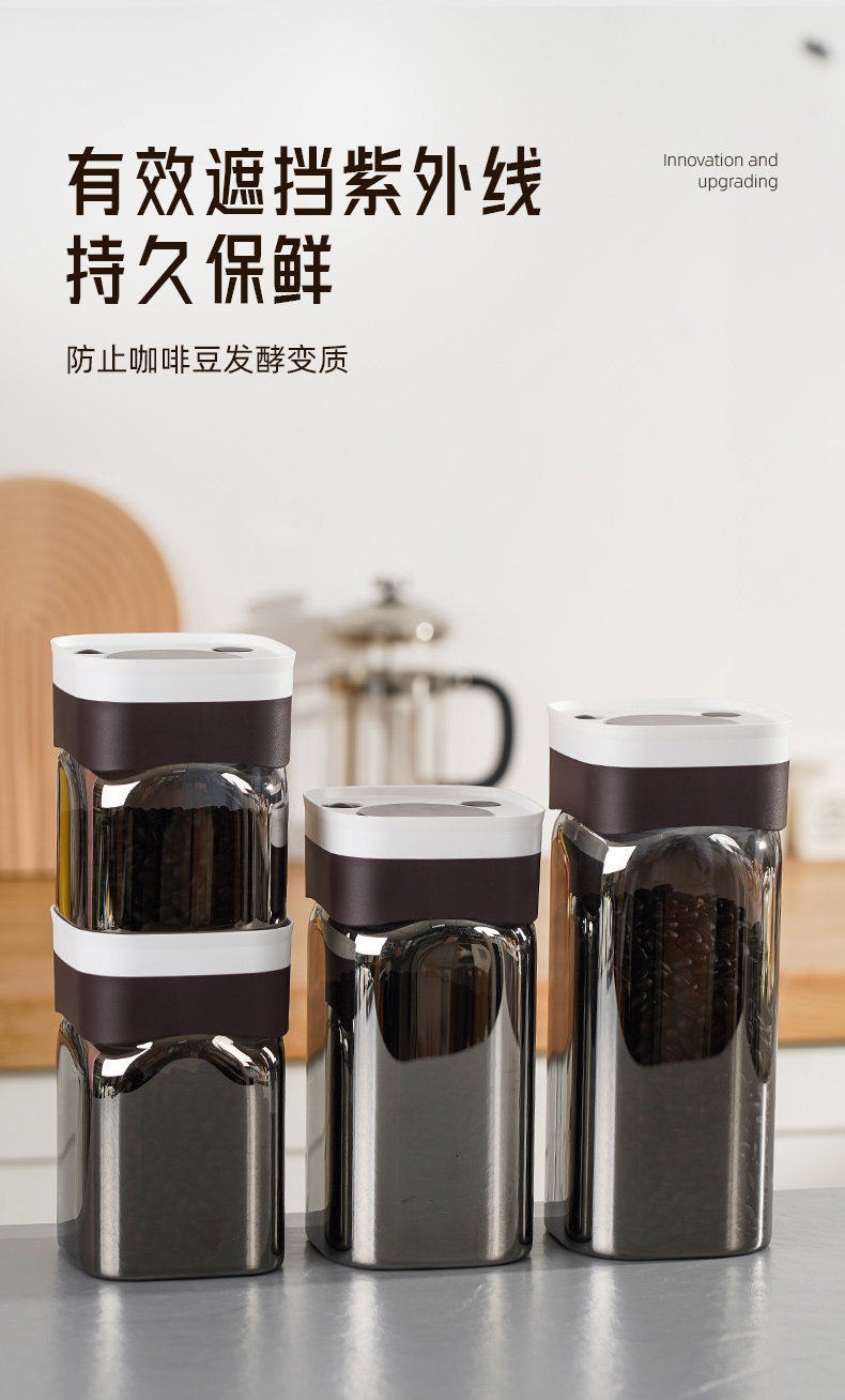 咖啡豆密封罐食级玻璃罐咖啡粉茶叶保罐纳盒方形真空器具