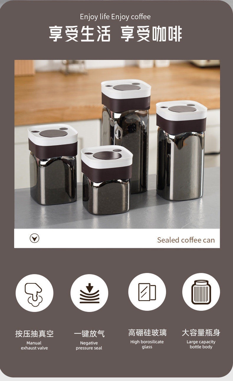 咖啡豆密封罐食级玻璃罐咖啡粉茶叶保罐纳盒方形真空器具,批发价,价格:60.05,厂家直销,咖啡豆密封罐食级玻璃罐咖啡粉茶叶保罐纳盒方形真空器具,免费拿样。