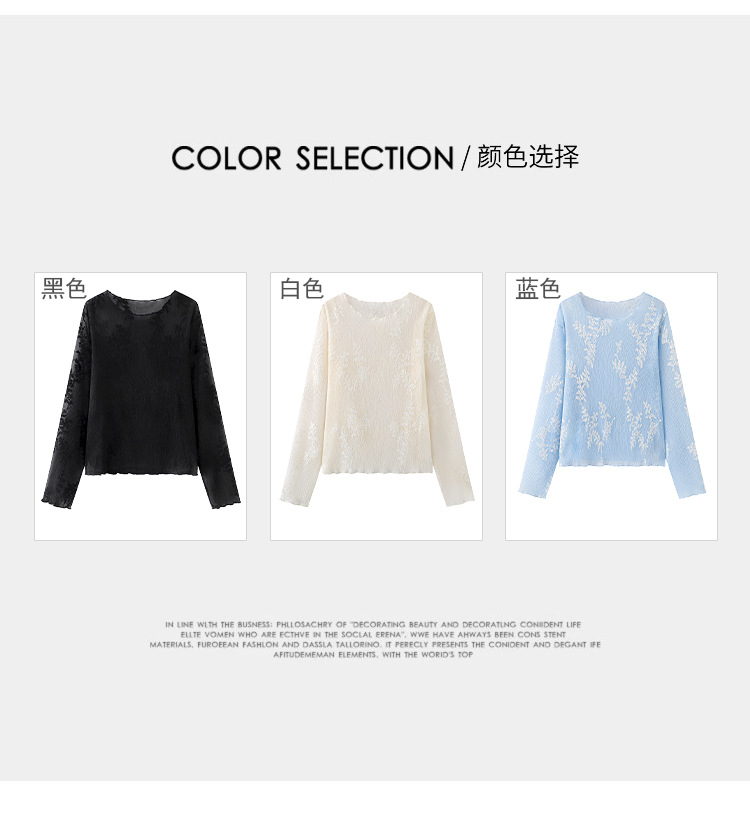刺绣设计感气质百搭长袖打底衫2026新款时尚圆领蕾丝上衣女,批发价,价格:43,厂家直销,刺绣设计感气质百搭长袖打底衫2026新款时尚圆领蕾丝上衣女,免费拿样。
