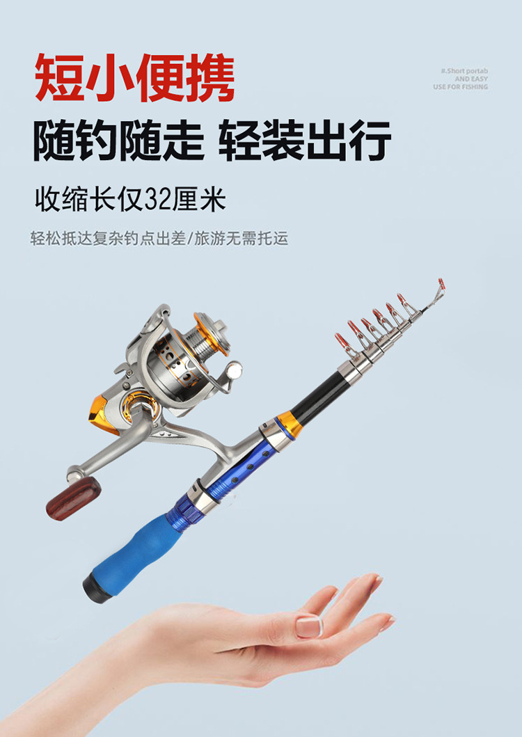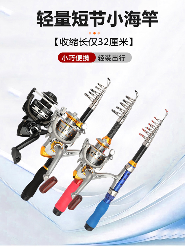 超短便携伸缩小海竿 1-2.3米新款超短节海钓渔轮套装玻璃钢钓鱼竿