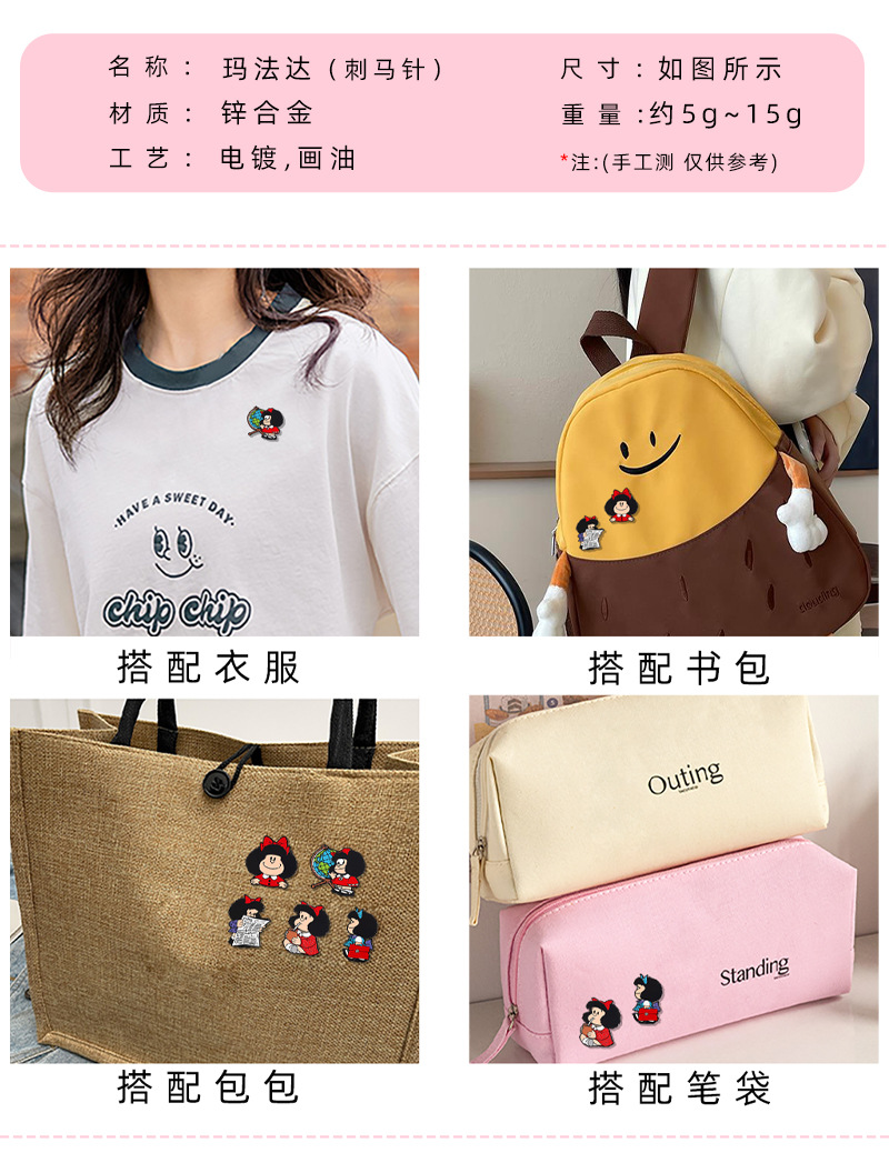 卡通玛法达徽章滴油胸针套装环保合金卡通角色衣饰书包装饰徽章