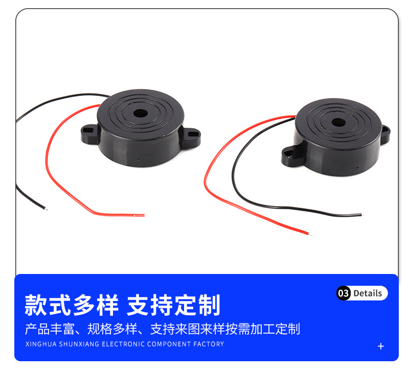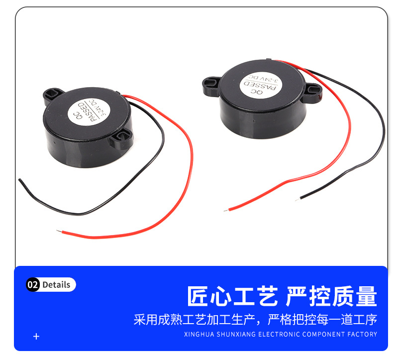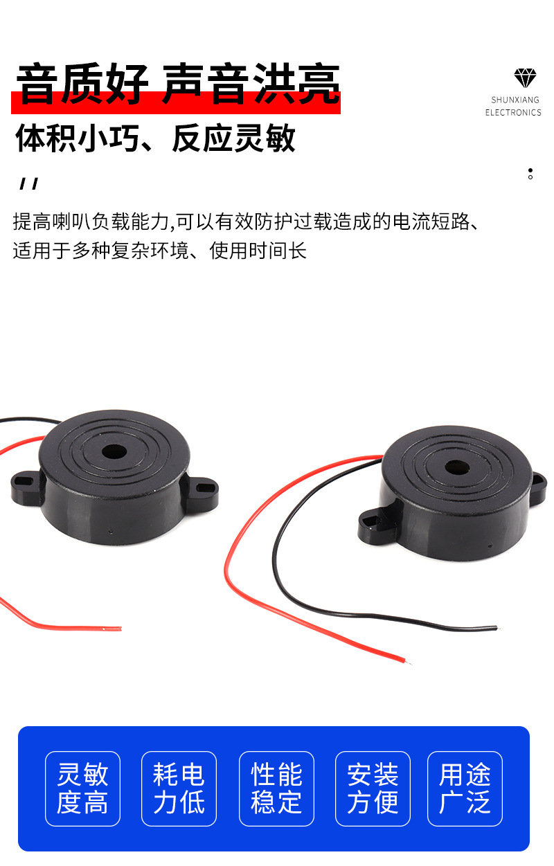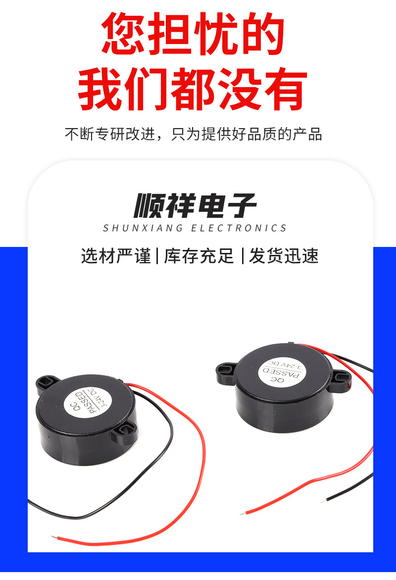 推荐理由:4216有源压电式焊线蜂鸣器报警器42*16MM高分贝带耳朵连续声3-24V