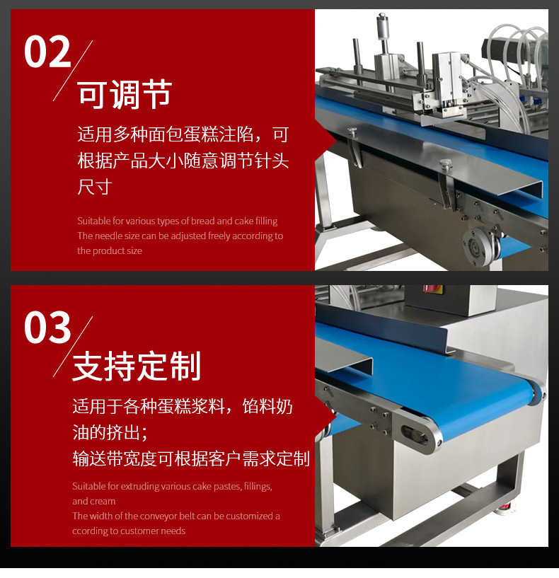 泡芙注芯机蛋糕注馅机果酱注芯机面包奶油填充机缓进式注馅机