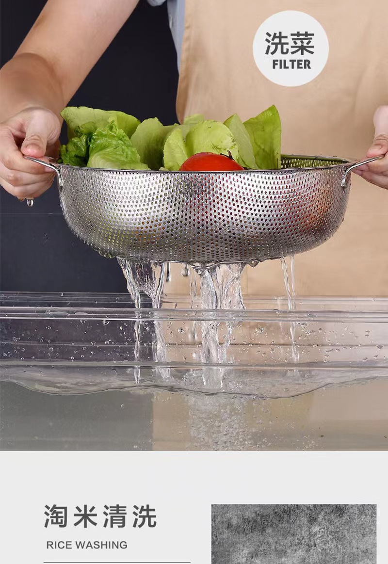批发不锈钢沥水篮洗菜篮密孔篮洗米筛冲孔厨房多用九块九厂家货源