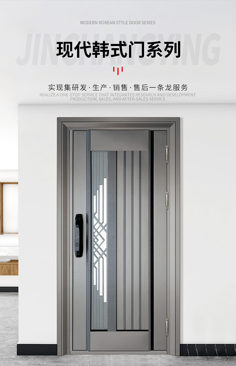 佛山不锈钢韩式门304防盗门智能锁单开门小区商品房入户门单开式