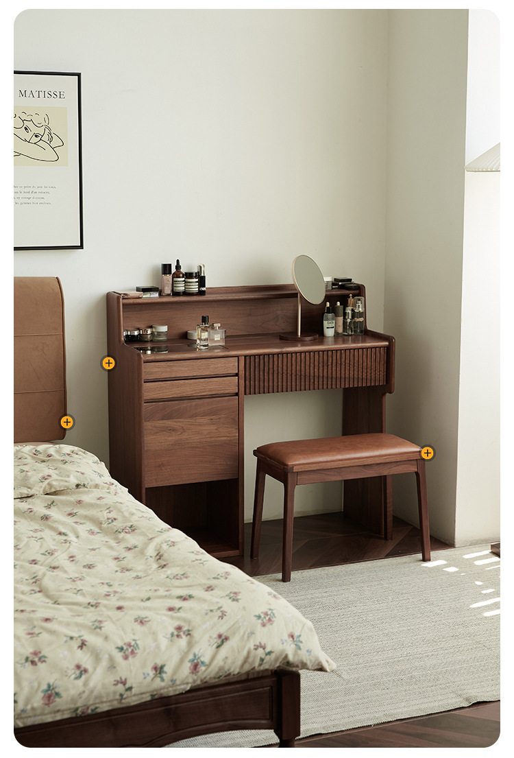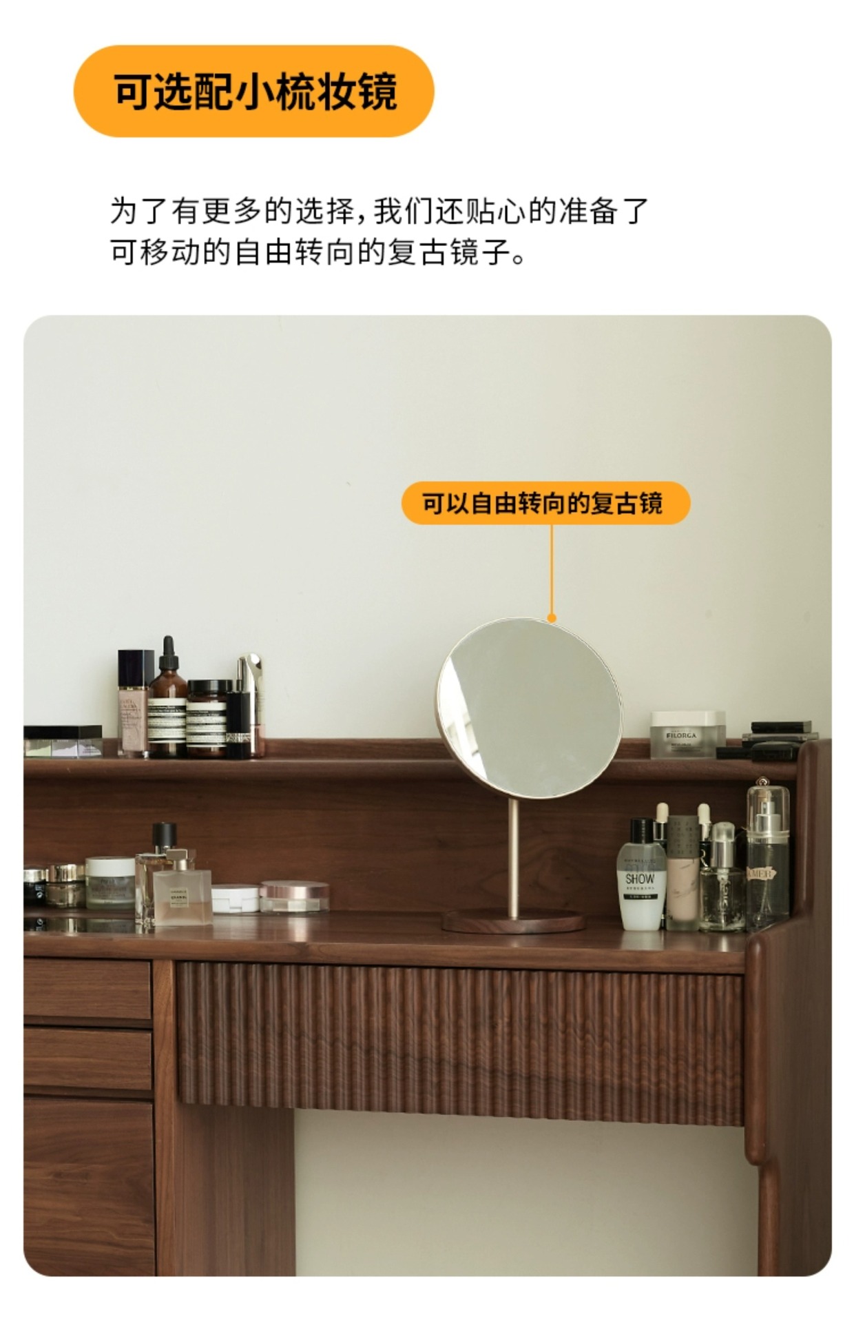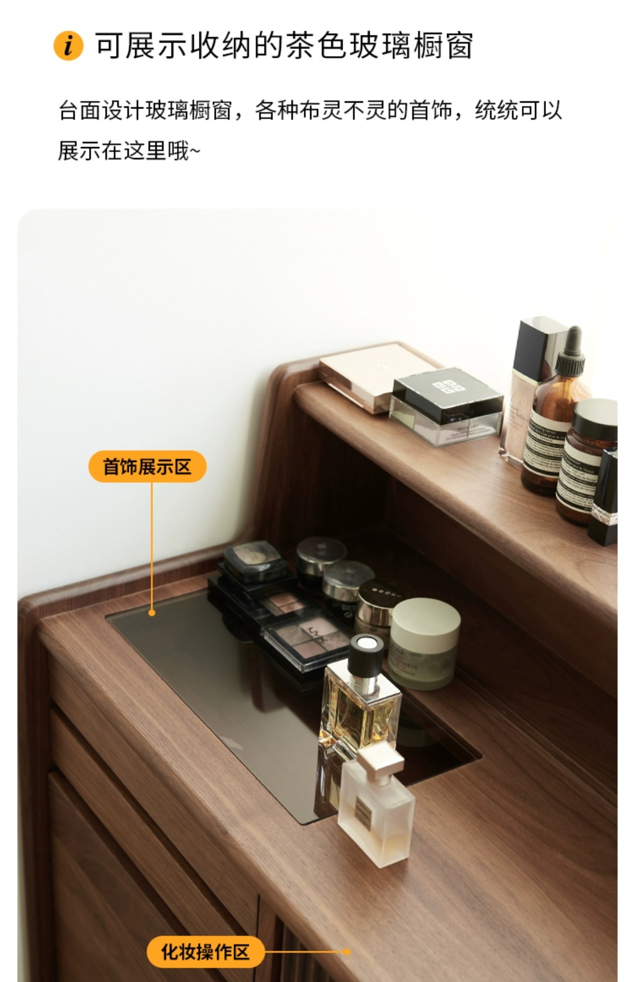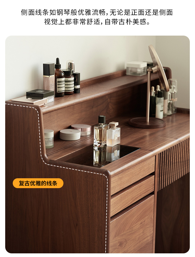 北美黑胡桃木钢琴梳妆台现代简约卧室化妆桌北欧复古樱桃木化妆台