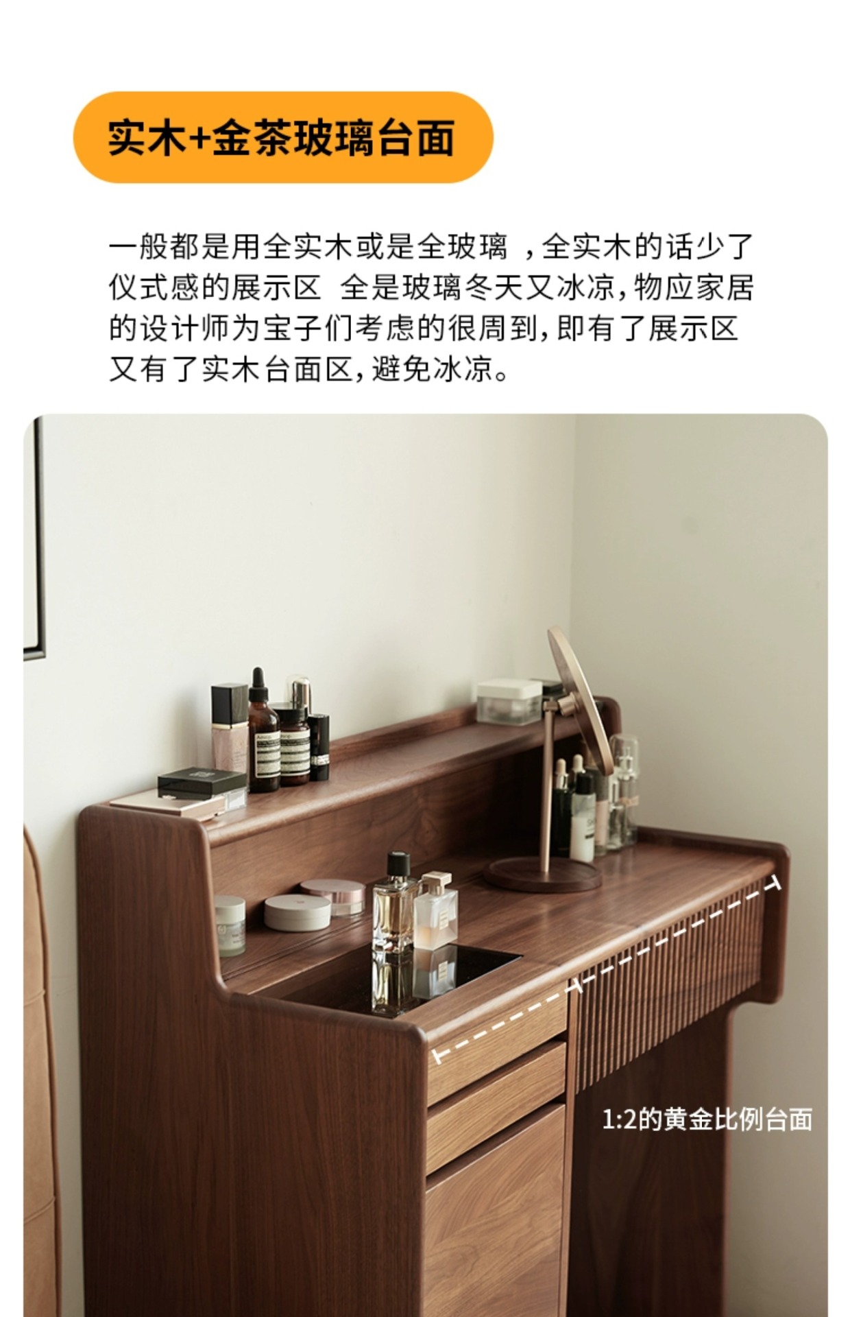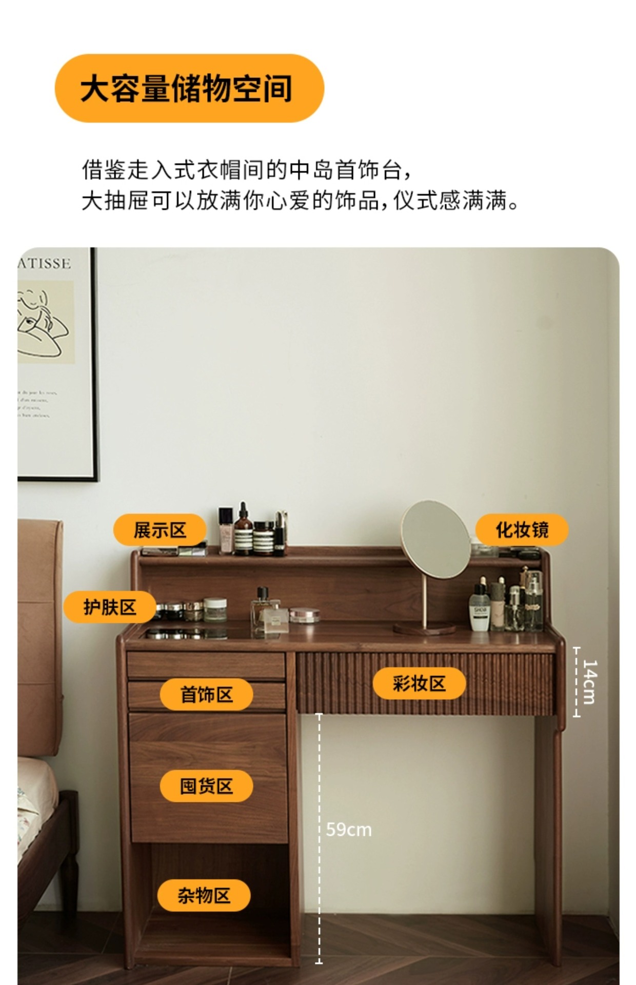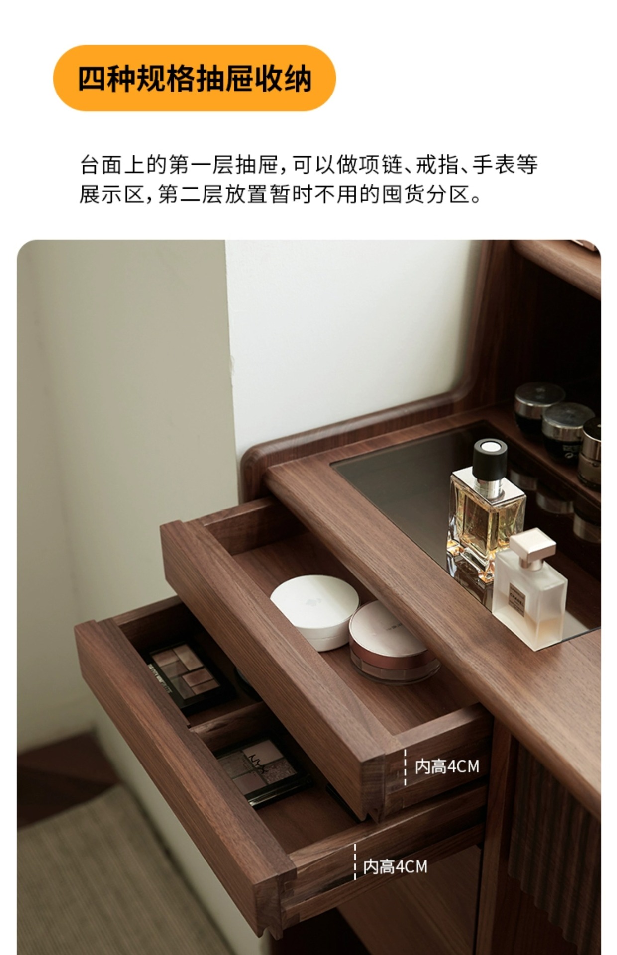 北美黑胡桃木钢琴梳妆台现代简约卧室化妆桌北欧复古樱桃木化妆台