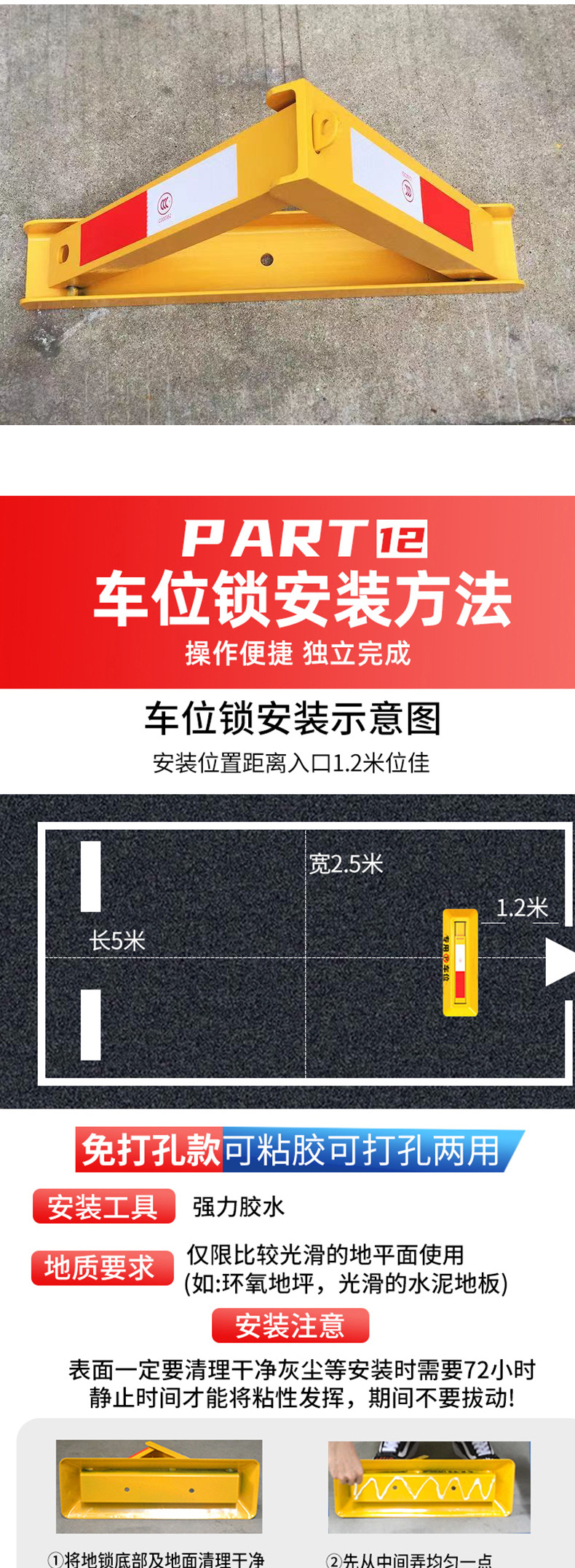 三角形加厚车位锁占位锁生产停车场地锁汽车防撞停车桩小区锁车器