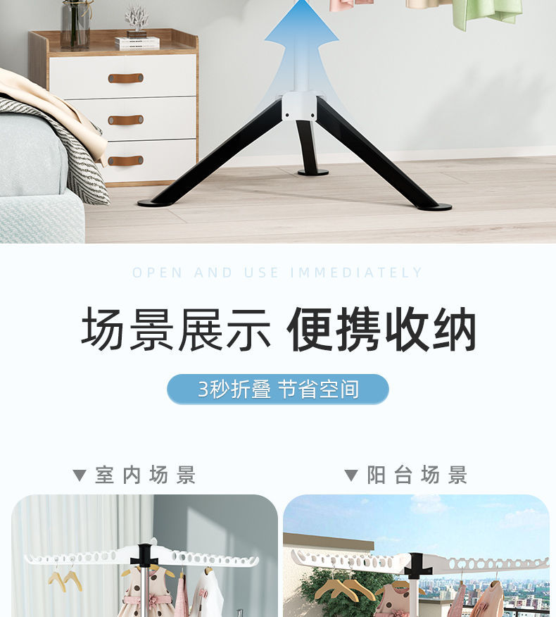 可折叠晾衣架落地卧室内阳台晒衣架多功能家用晾衣服杆衣架简易