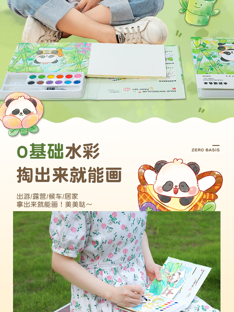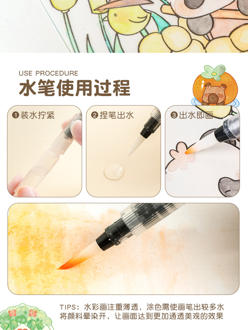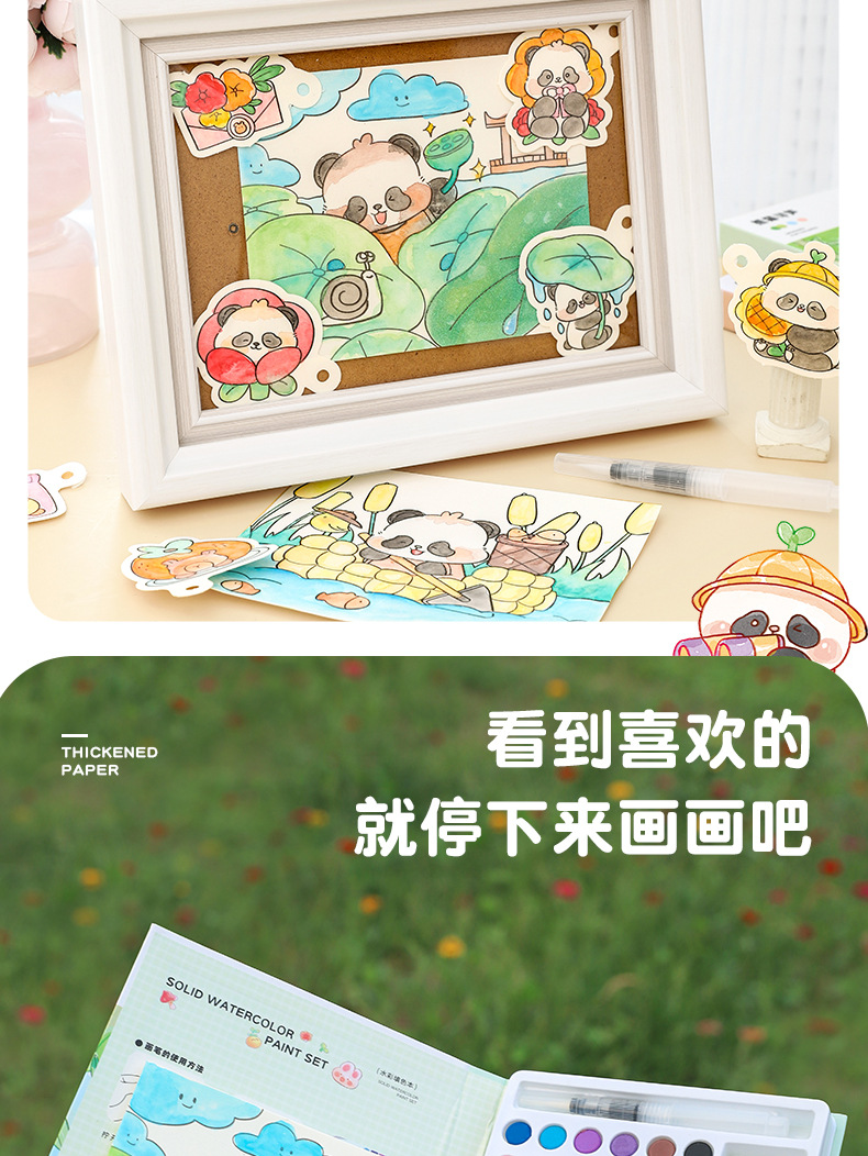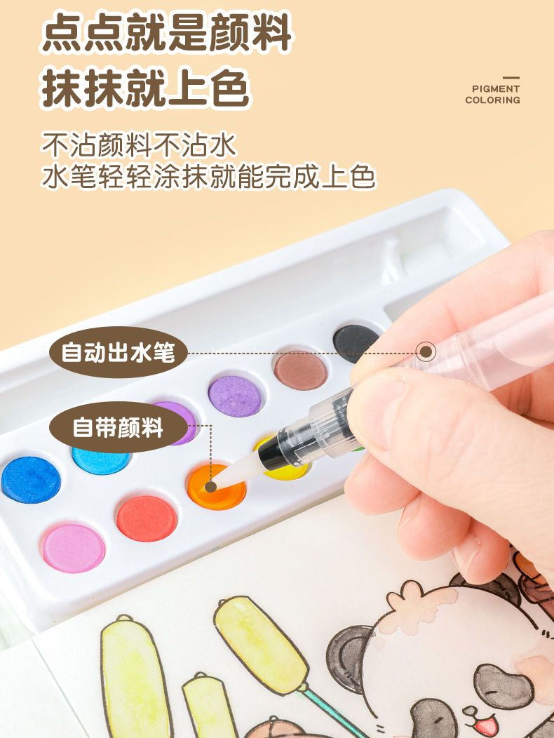 水彩填色本儿童文具通益智安静书自带颜料沾水即画解压涂色创意书