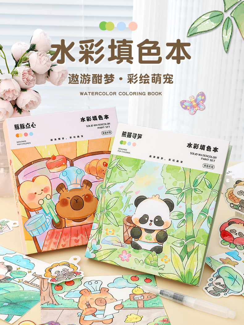 水彩填色本儿童文具通益智安静书自带颜料沾水即画解压涂色创意书,批发价,价格:11.8,厂家直销,水彩填色本儿童文具通益智安静书自带颜料沾水即画解压涂色创意书,免费拿样。