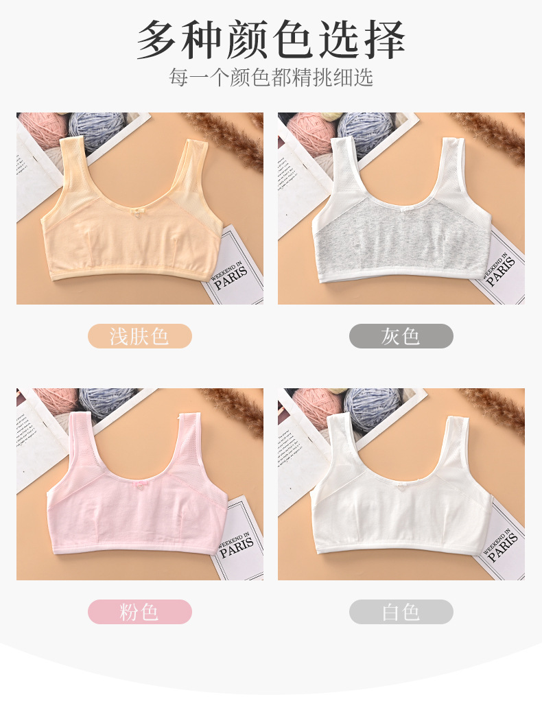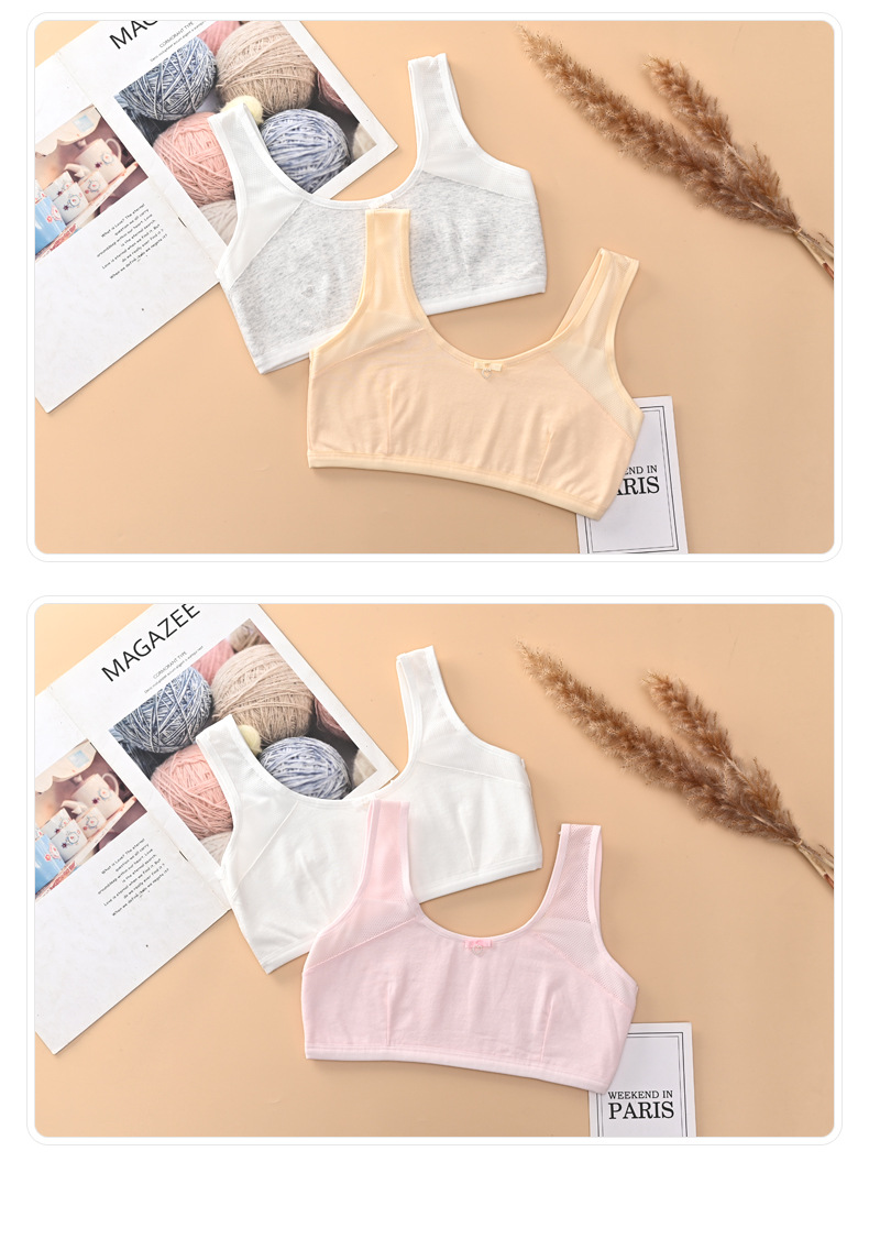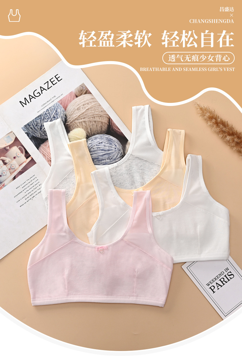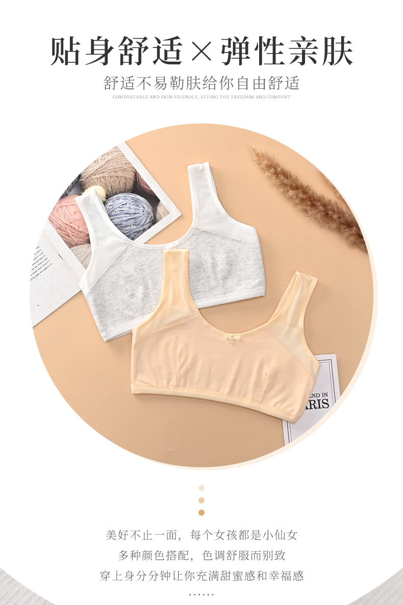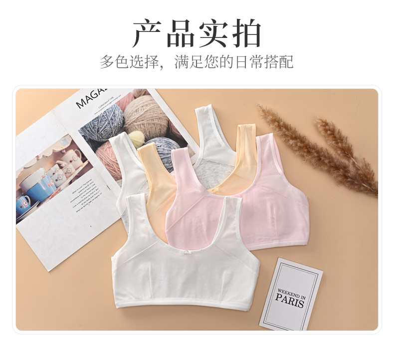 9-13岁发育期少女内衣 初中生小学生棉质双层夹棉背心 一阶段文胸,批发价,价格:4.5,厂家直销,9-13岁发育期少女内衣 初中生小学生棉质双层夹棉背心 一阶段文胸,免费拿样。