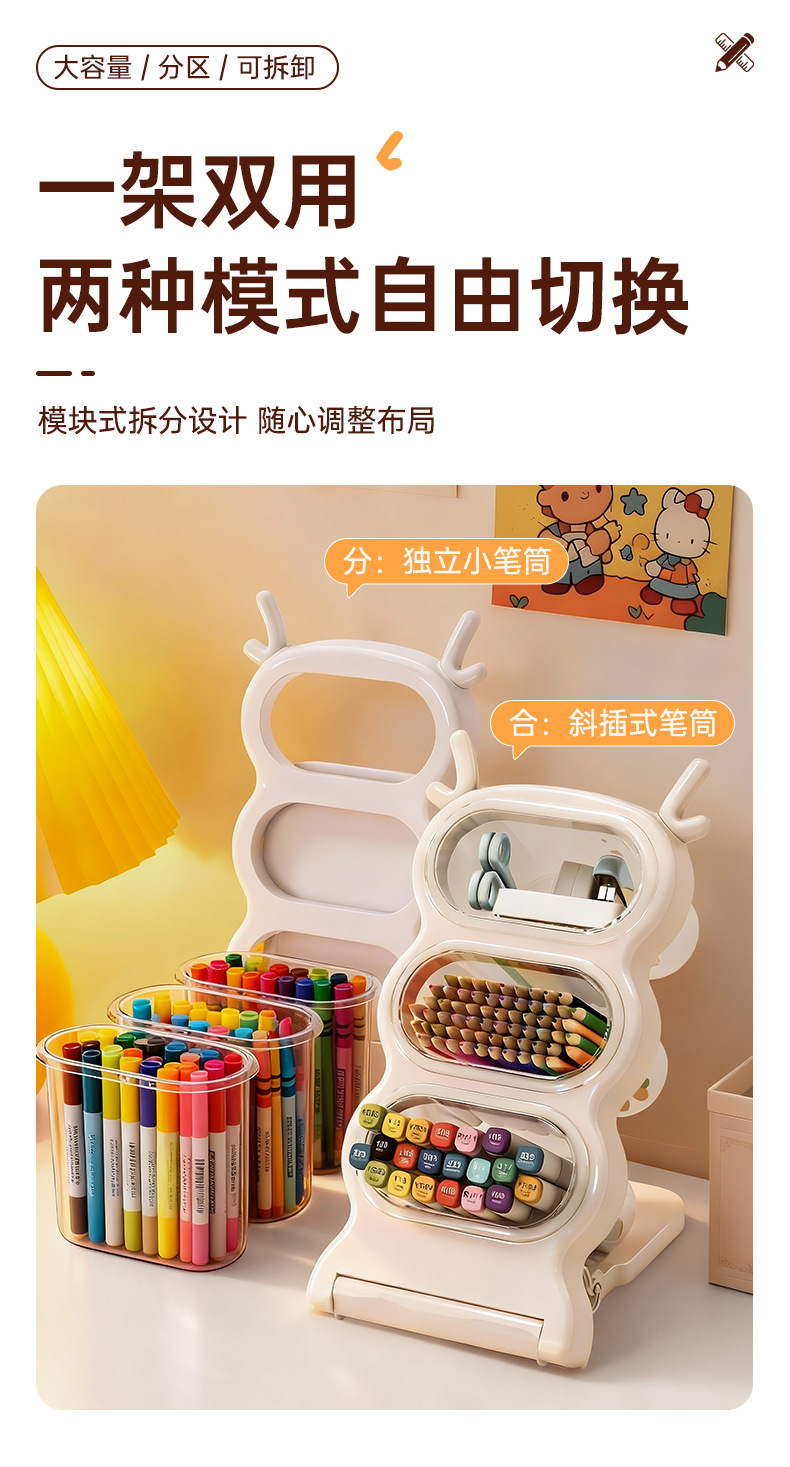 斜插式笔筒桌面收纳盒高颜值书桌文具置物架学生大容量可拆卸笔筒