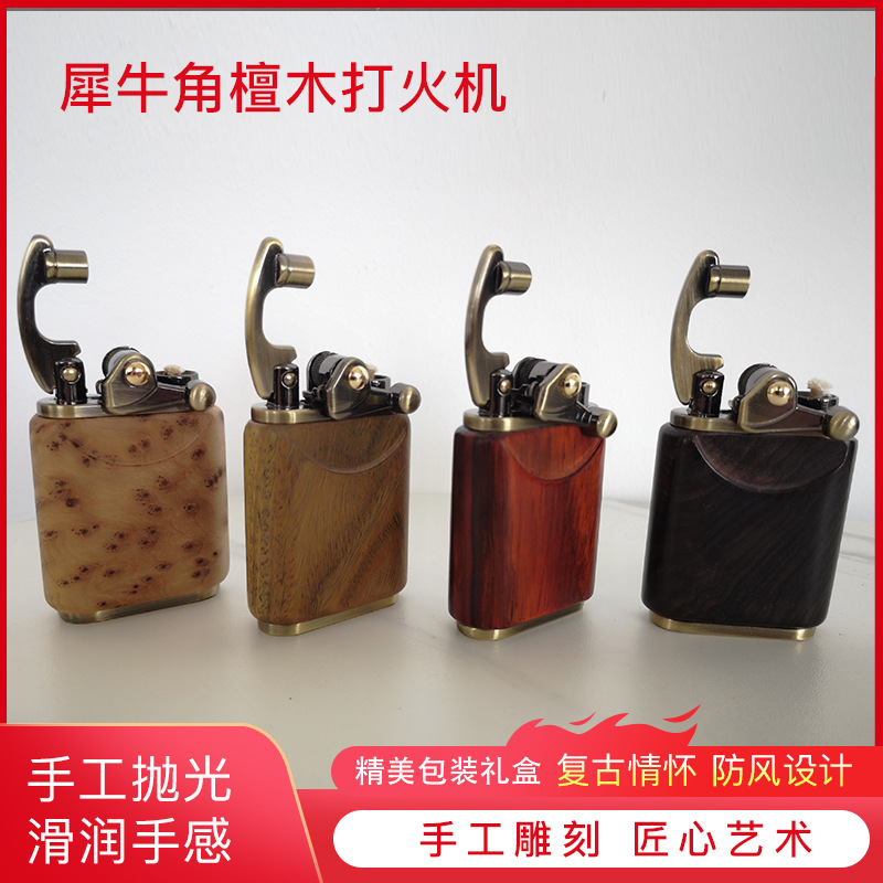 厂家批发复古煤油打火机木质刻字礼品商务檀木防风佐罗机芯打火机