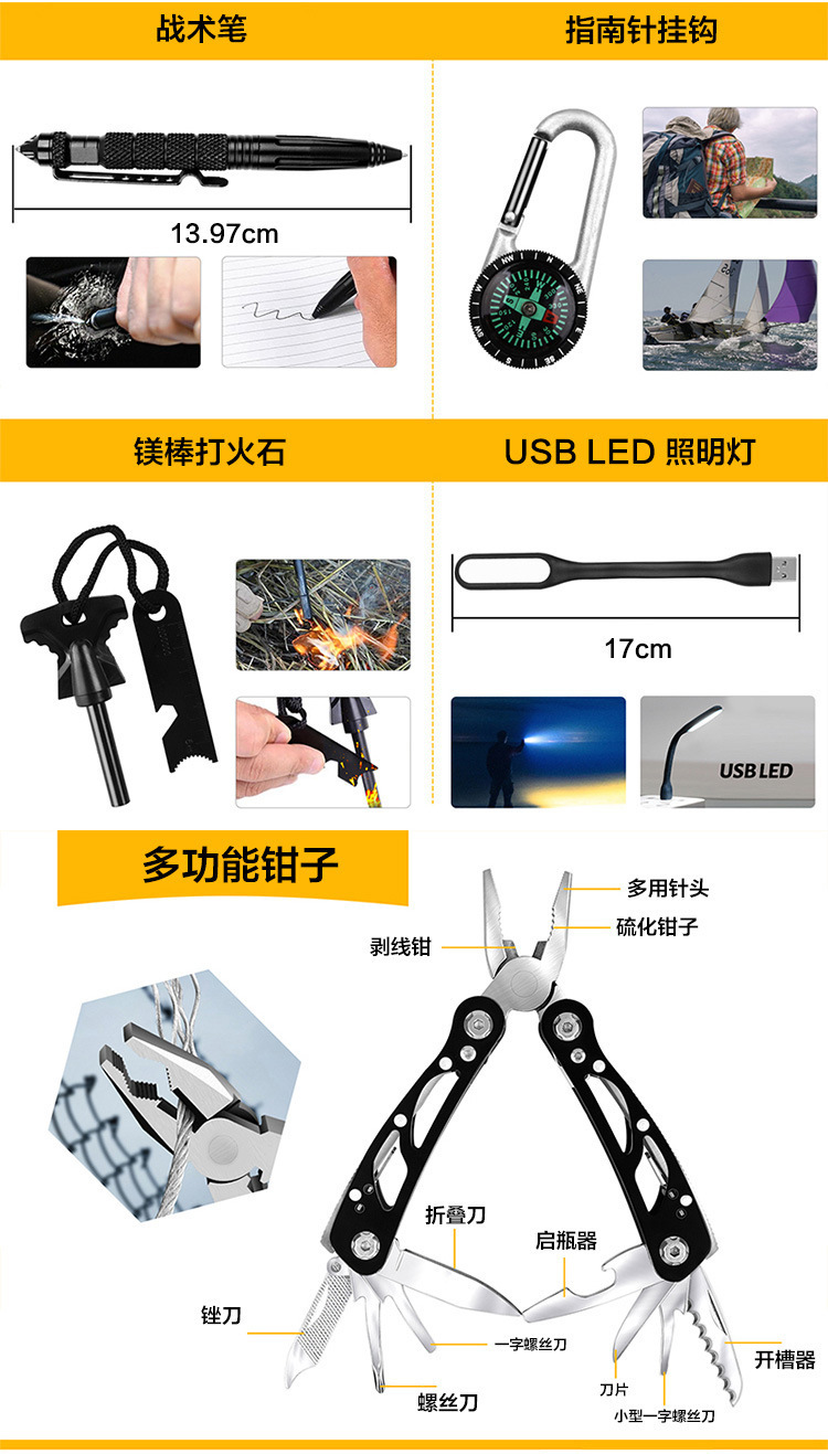 户外求生装备工具盒60合一套装多功能野外生存急救盒SOS应急装备,批发价,价格:63,厂家直销,户外求生装备工具盒60合一套装多功能野外生存急救盒SOS应急装备,免费拿样。