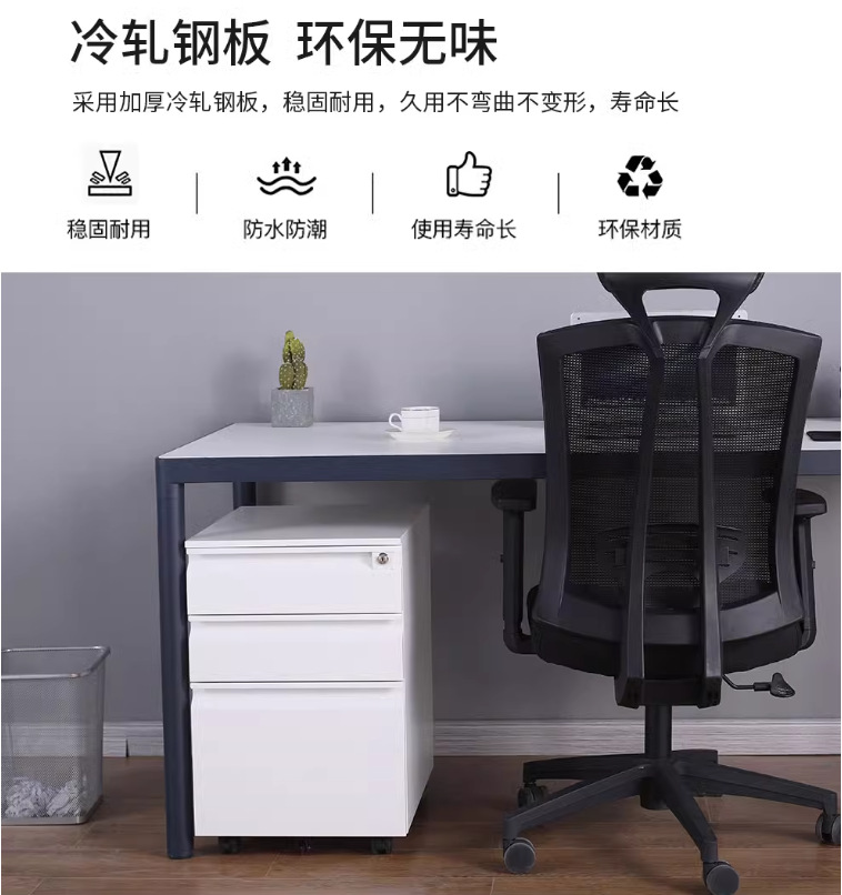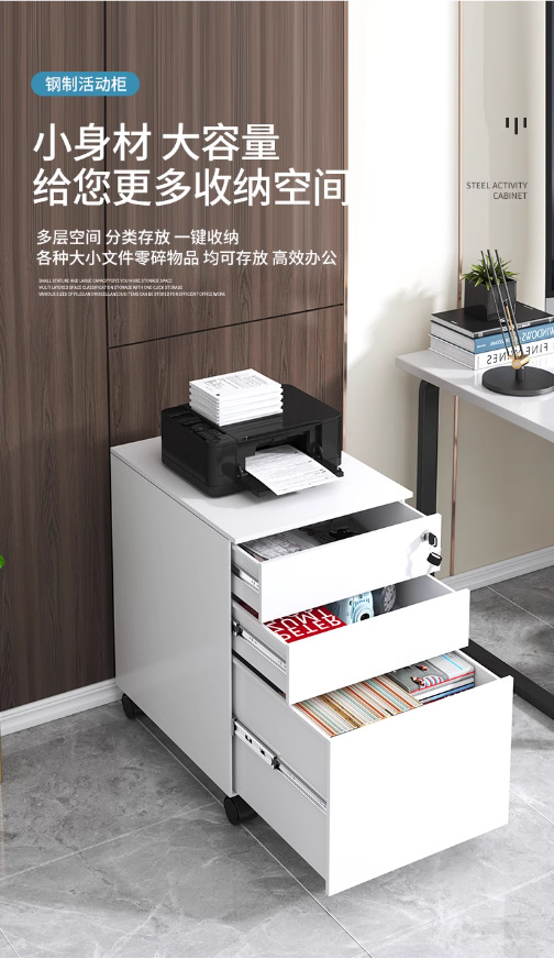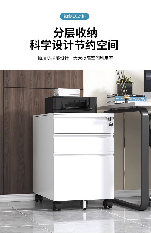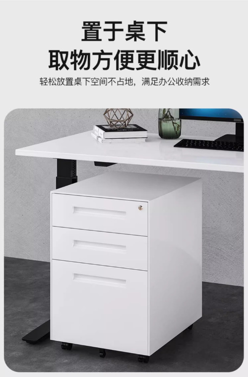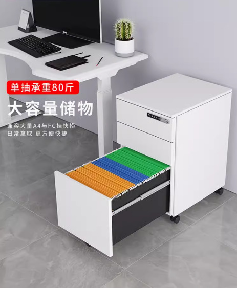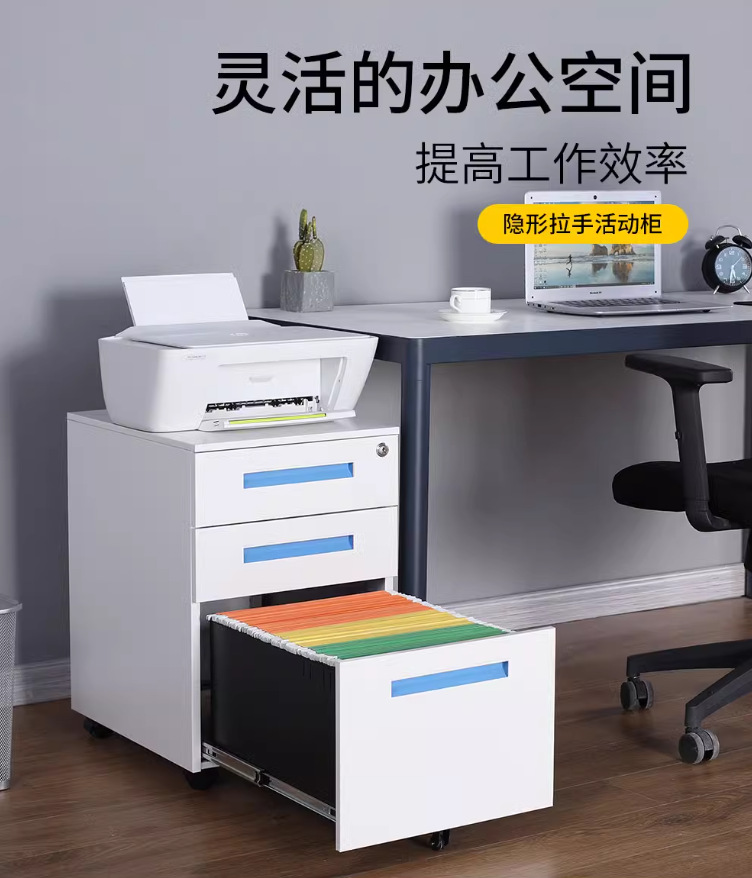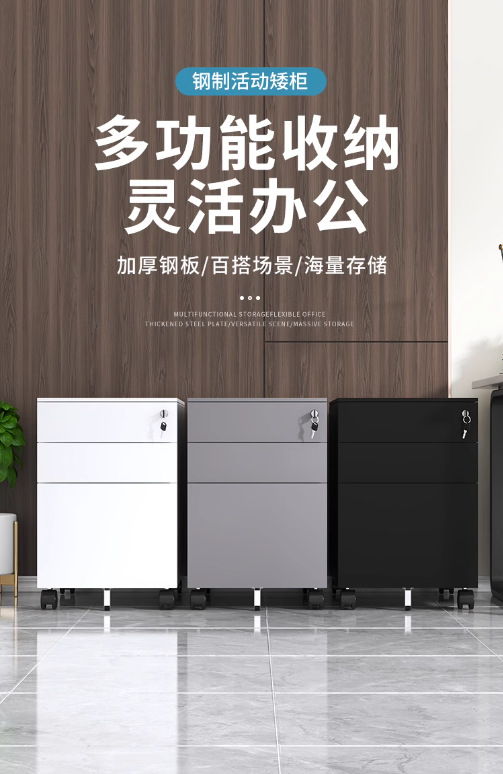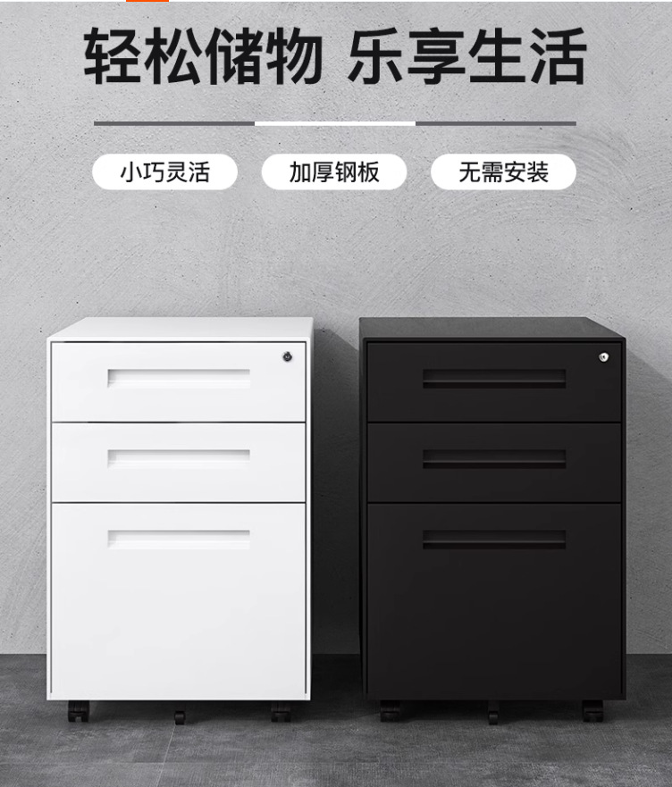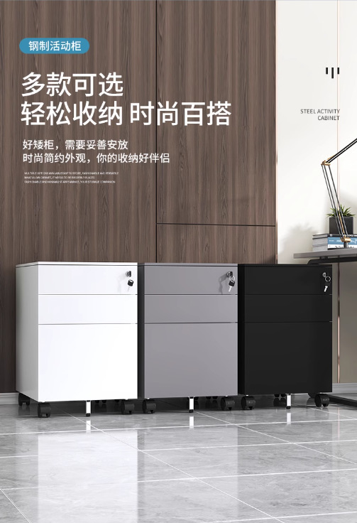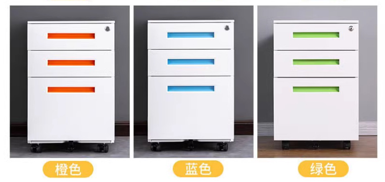 办公室桌下可移动矮柜铁皮带锁抽屉资料档案储物三抽钢制活动柜