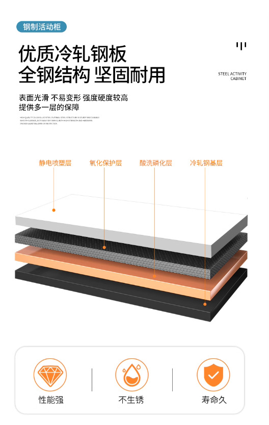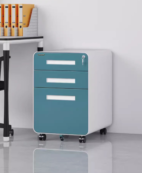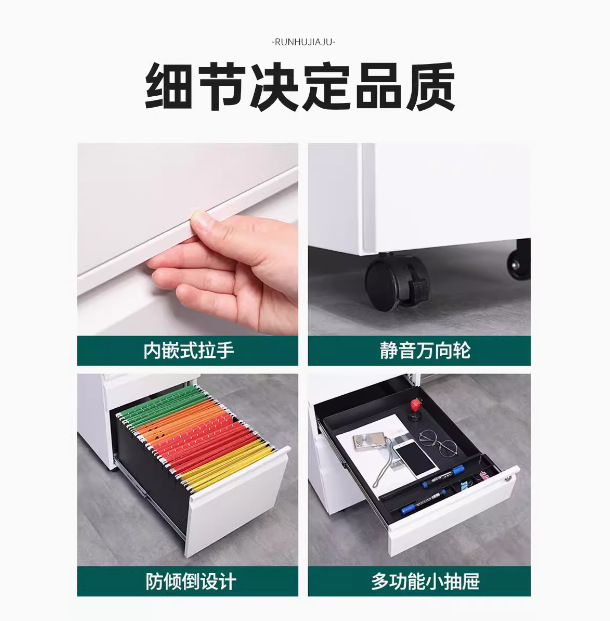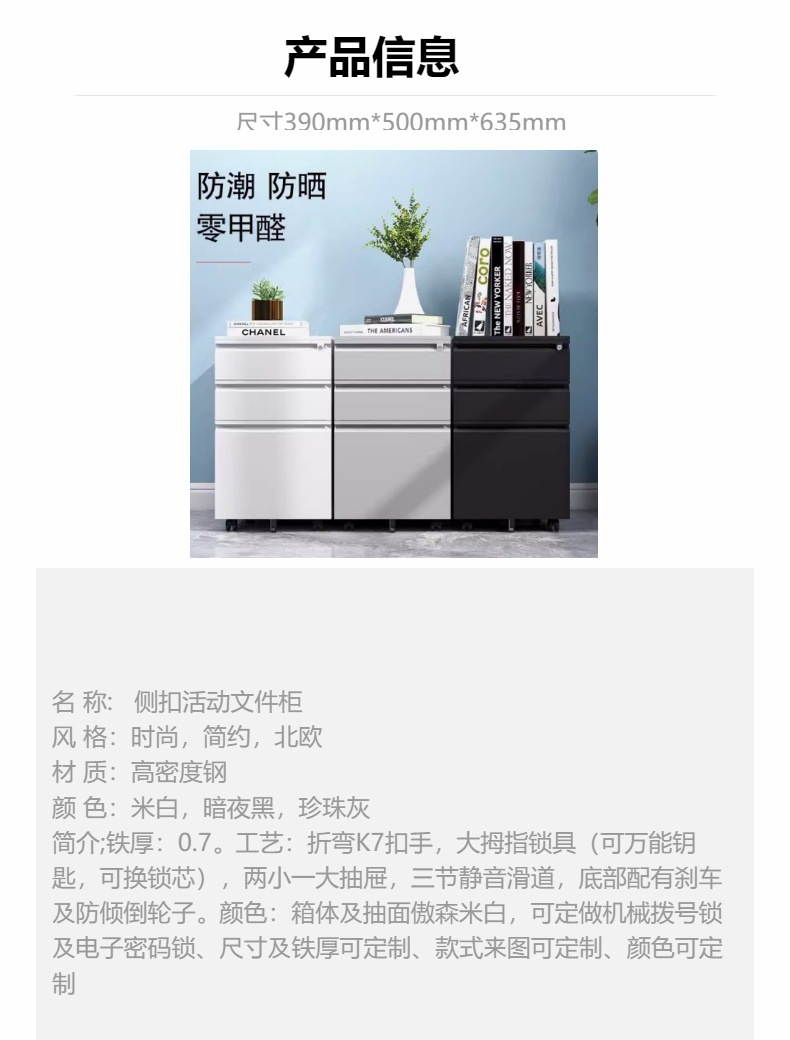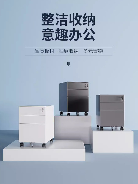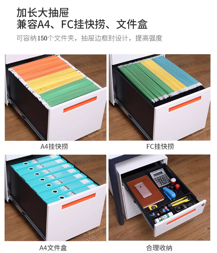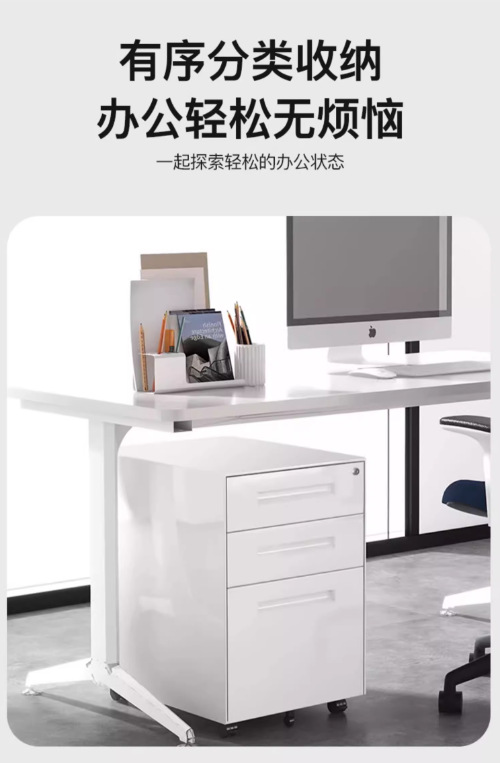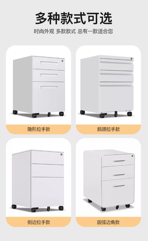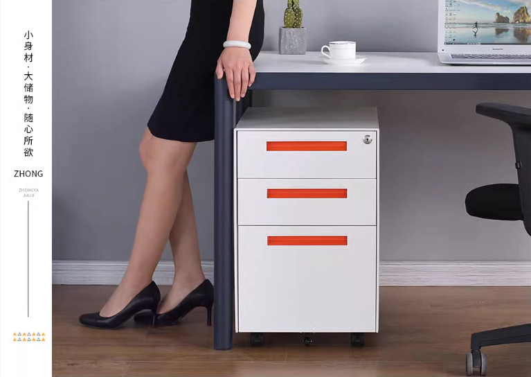 办公室桌下可移动矮柜铁皮带锁抽屉资料档案储物三抽钢制活动柜