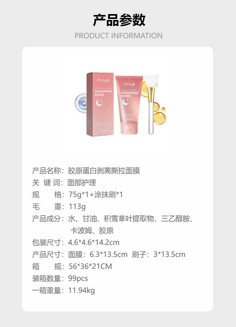 HOYGI 胶原蛋白剥离撕拉面膜 保湿补水滋养肌肤日常护肤撕拉面膜
