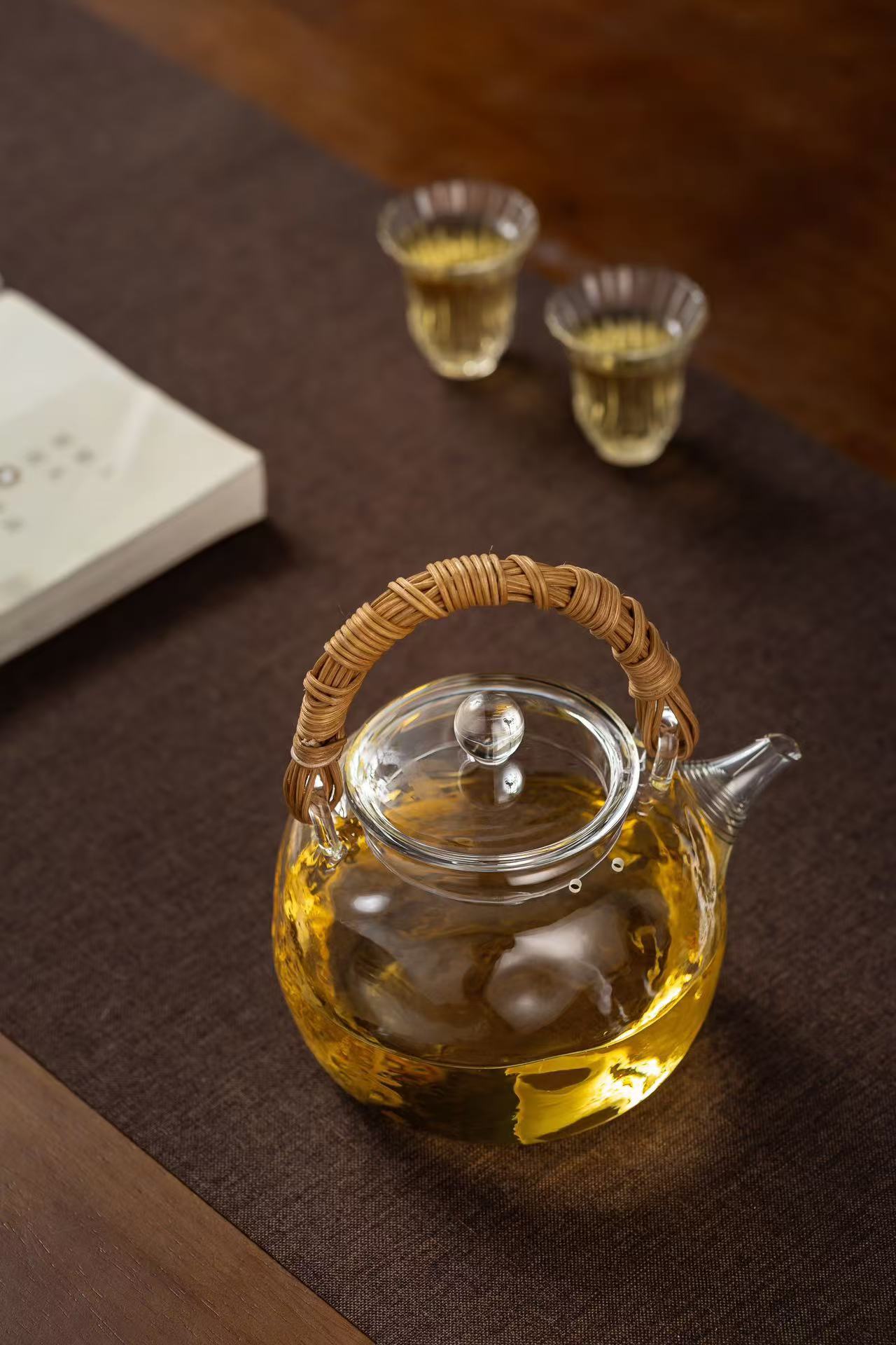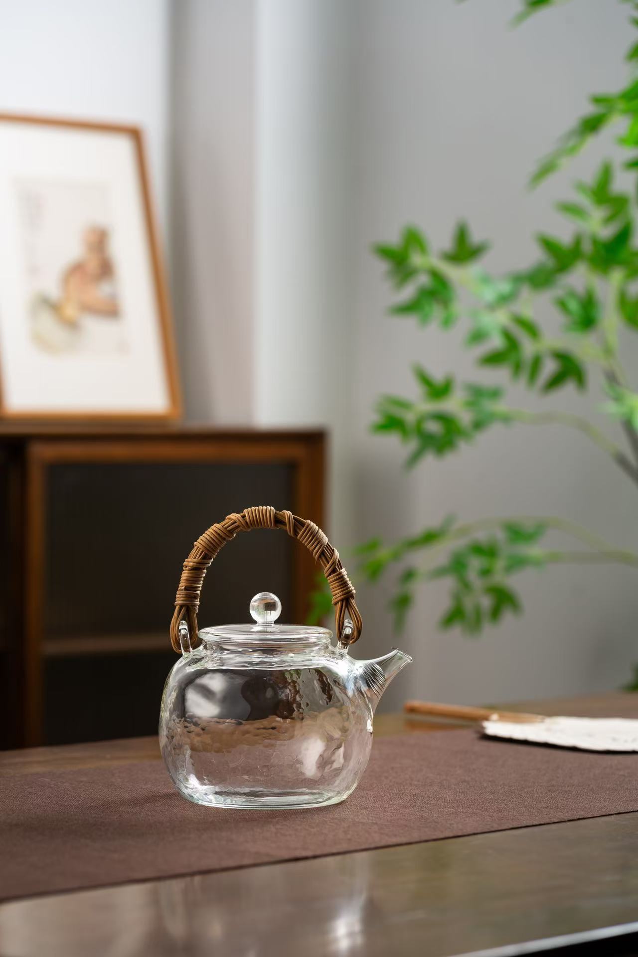 玻璃煮茶壶家用耐热日式锤纹电陶炉烧水壶藤编提梁壶功夫玻璃茶壶